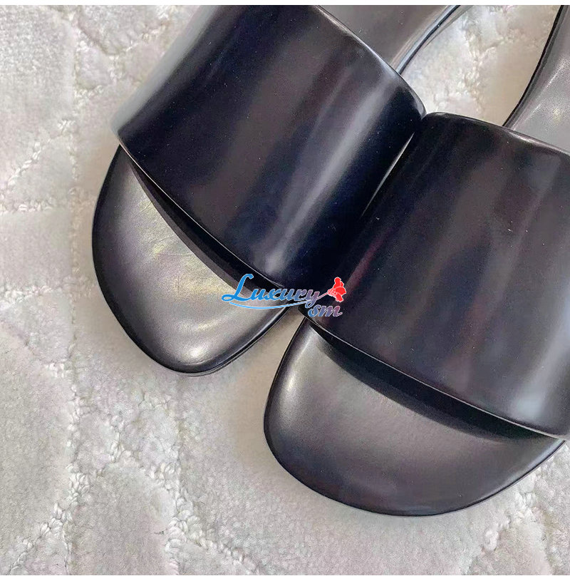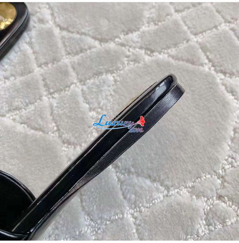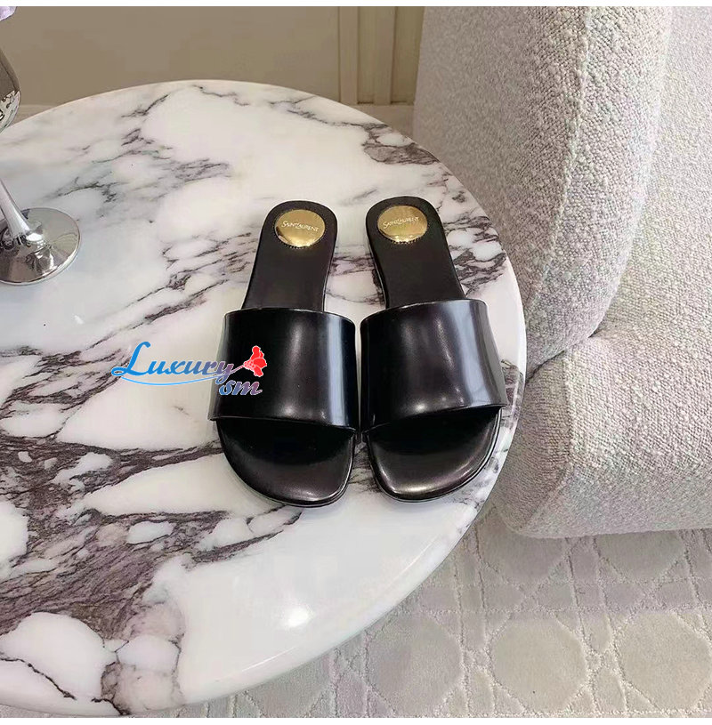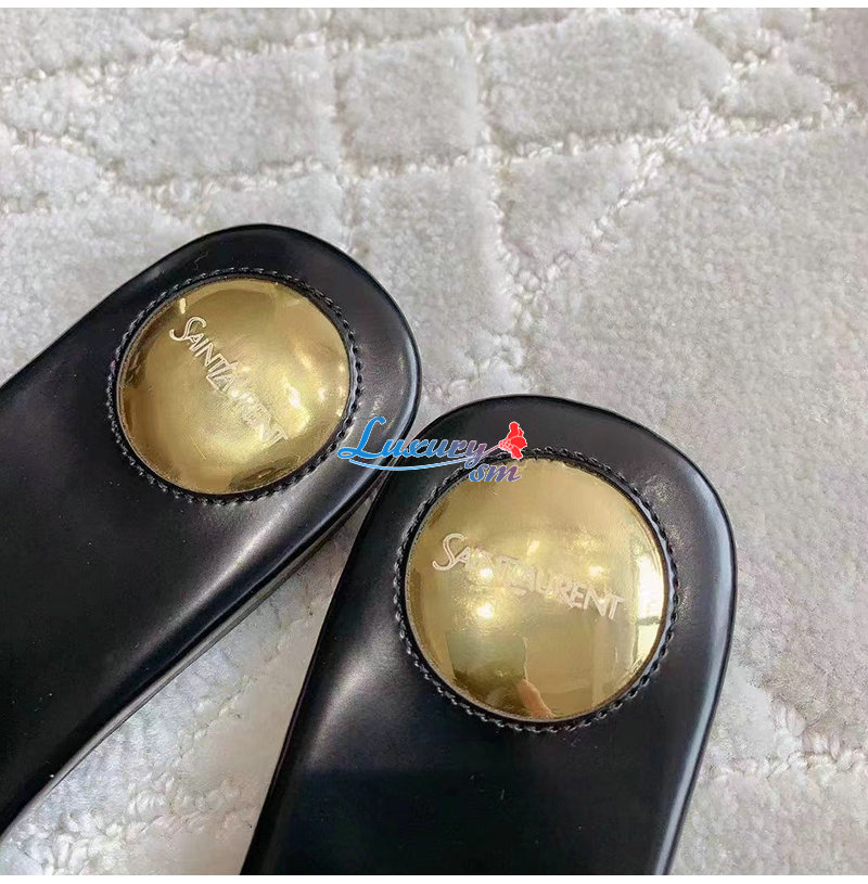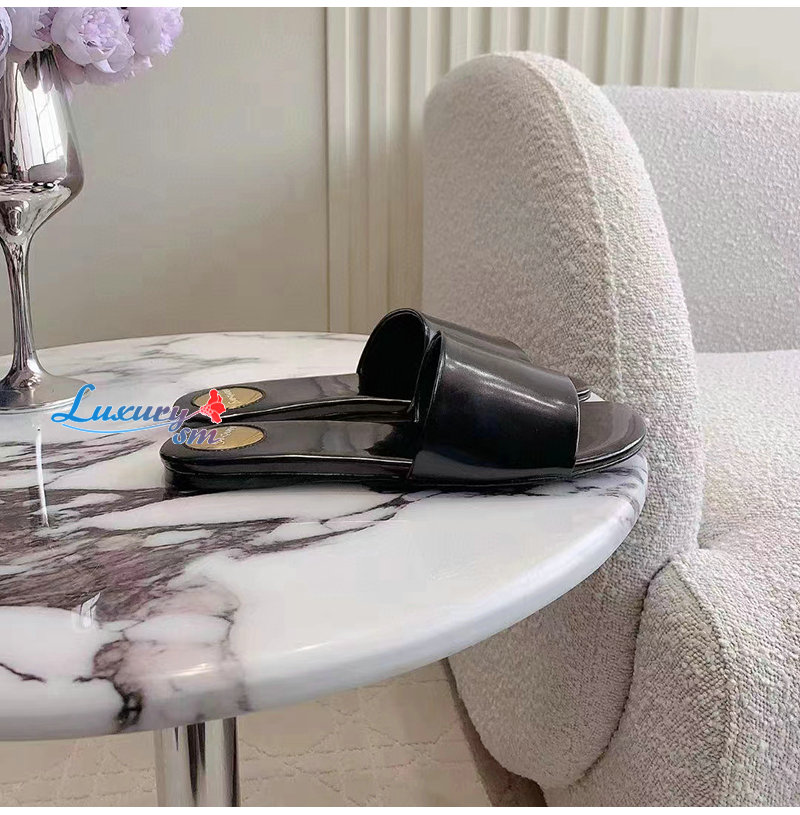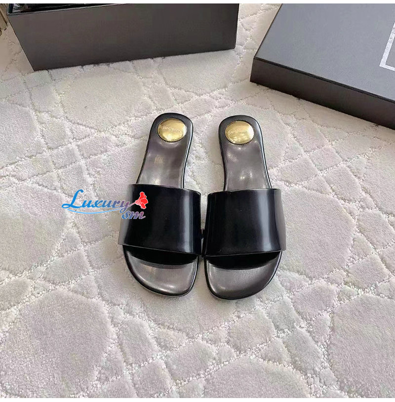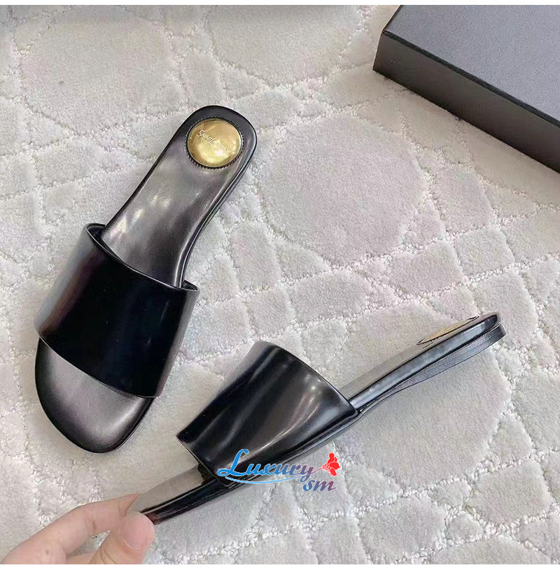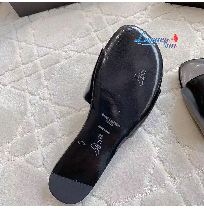 SAINT LAURENT-783319 생 로랑 블랙 글레이즈드 가죽 CARLYLE 슬라이드 여성용