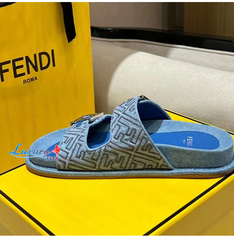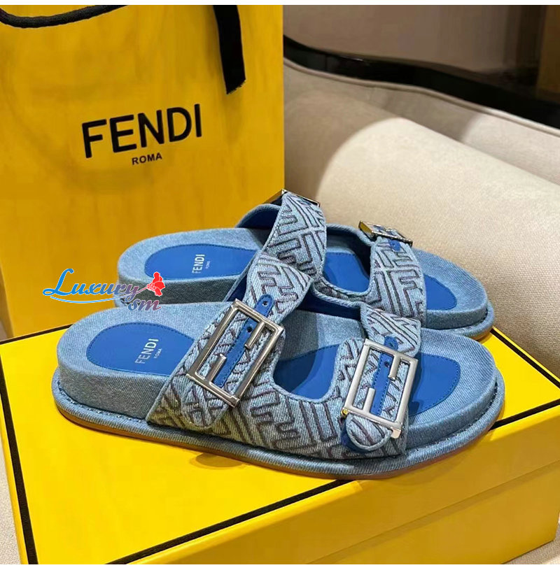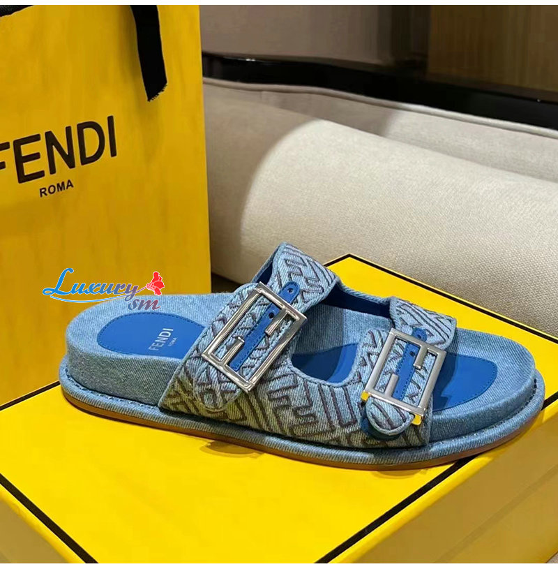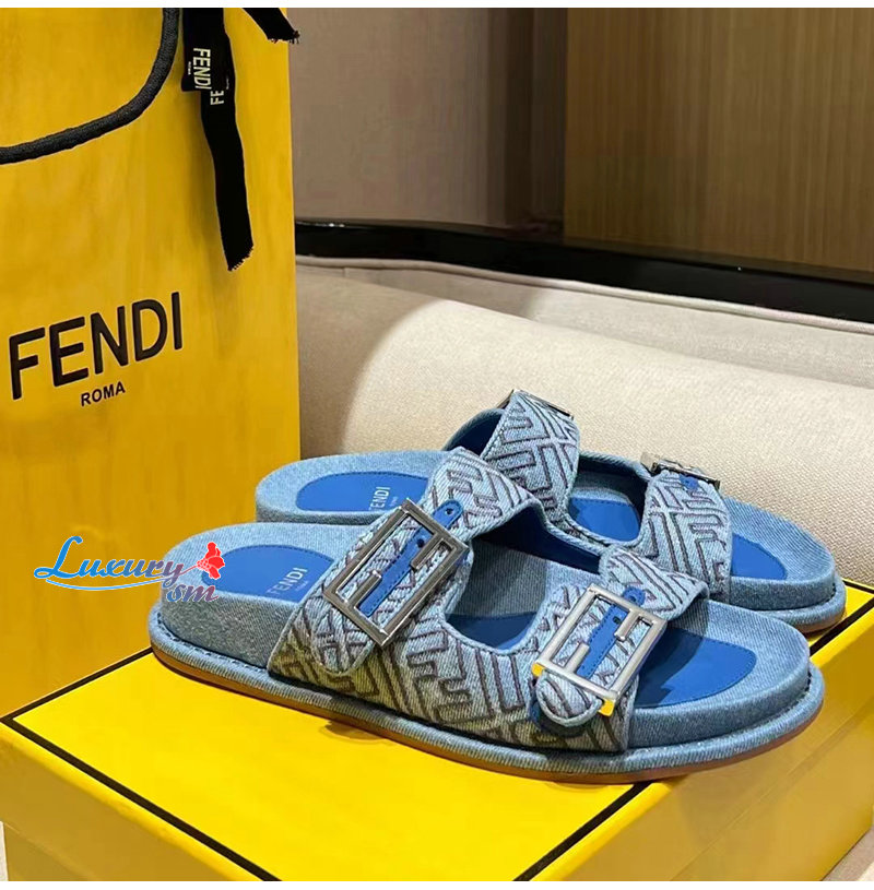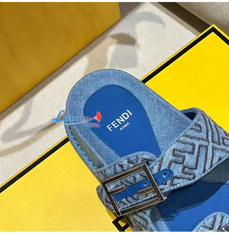 FENDI-8X8326 펜디 블루 데님 펜디 필 슬라이드 여성용