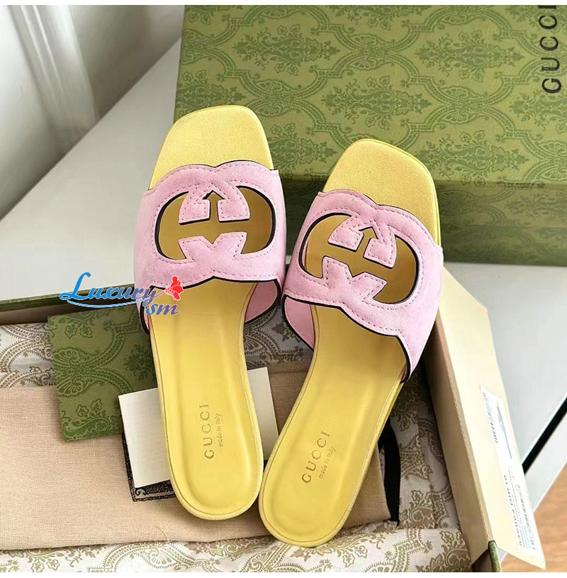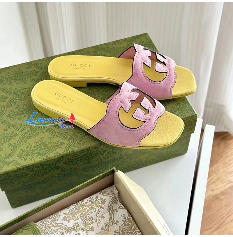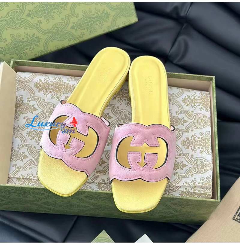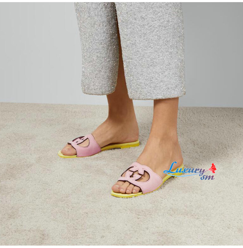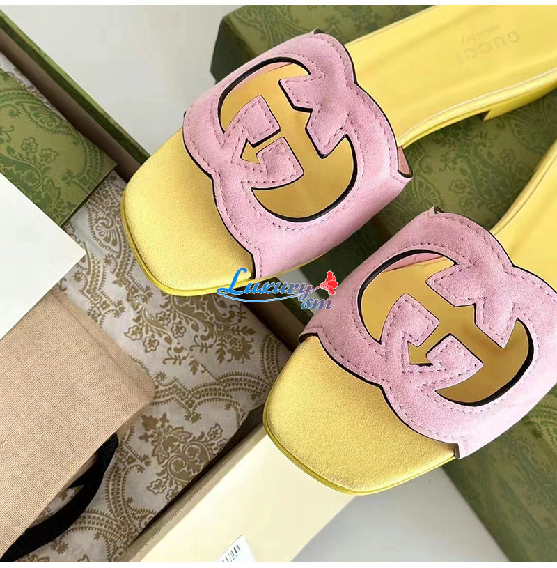 GUCCI-694451 5911 구찌 핑크/옐로우 인터로킹 G 컷아웃 샌들