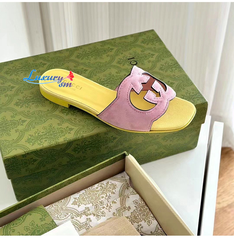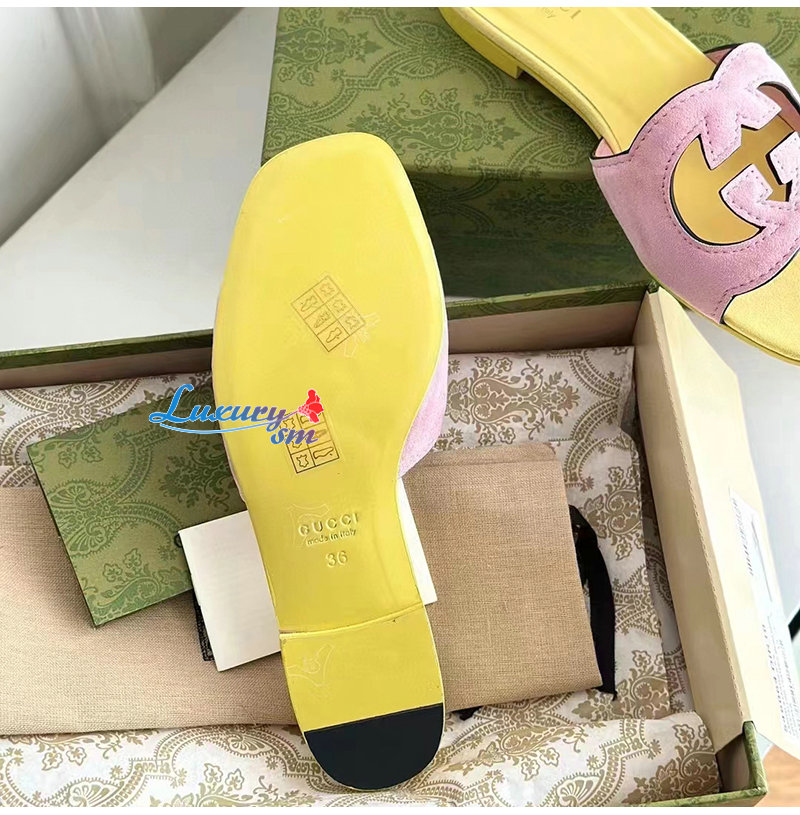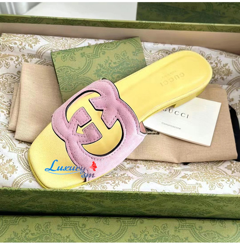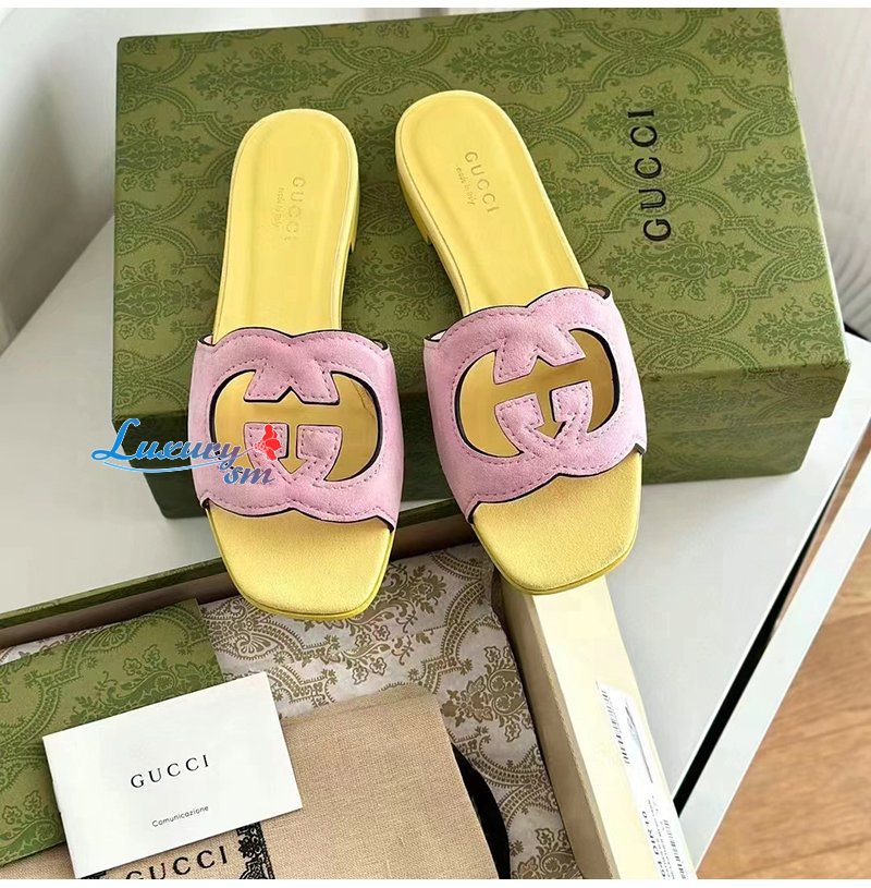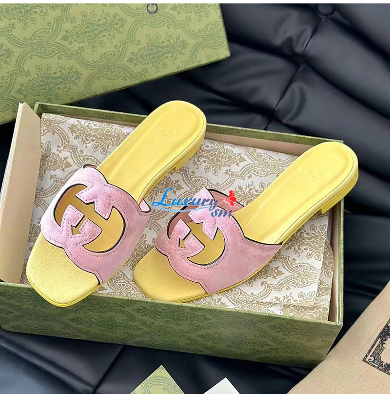 GUCCI-694451 5911 구찌 핑크/옐로우 인터로킹 G 컷아웃 샌들