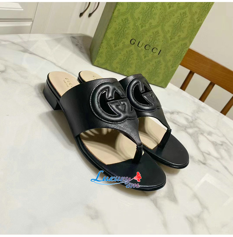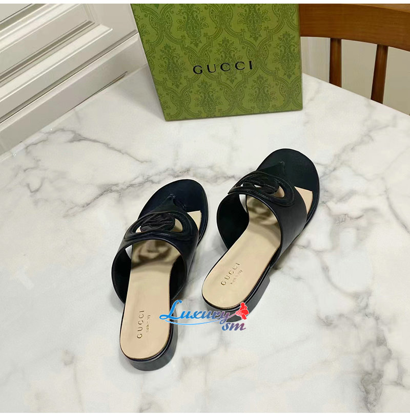 GUCCI-782411 1000 구찌 블랙 인터로킹 G 컷아웃 샌들 여성용