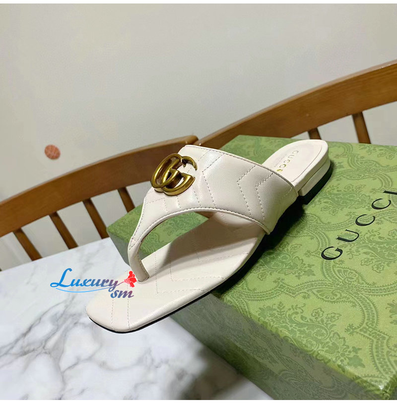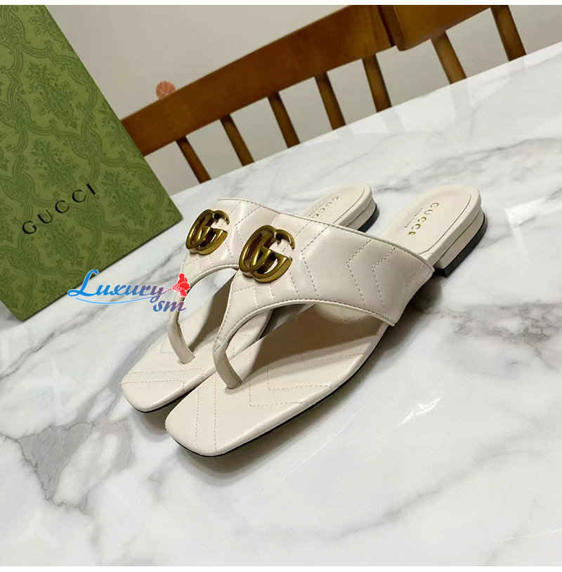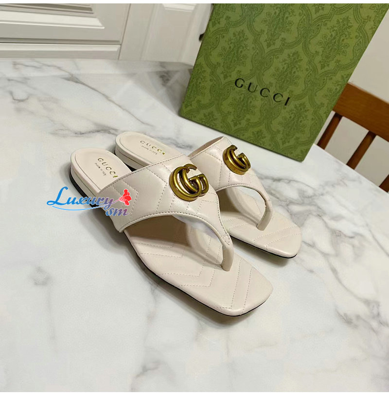 GUCCI-776948 9049 구찌 화이트 더블 G T-스트랩 샌들 여성용