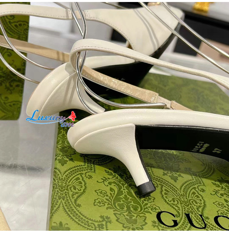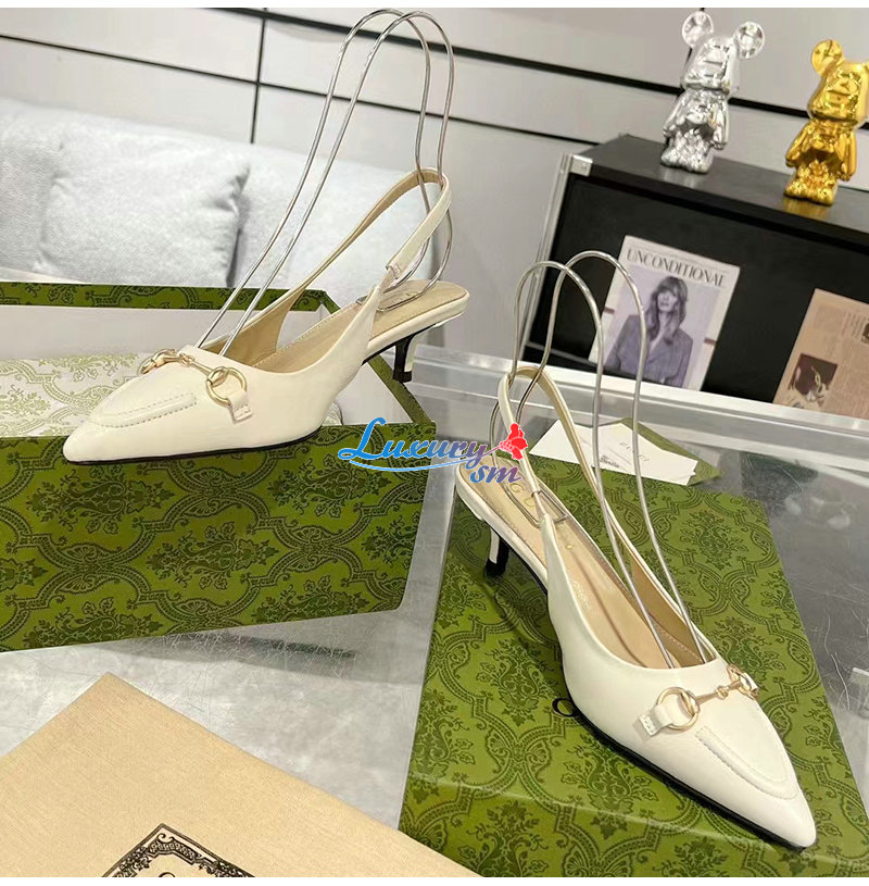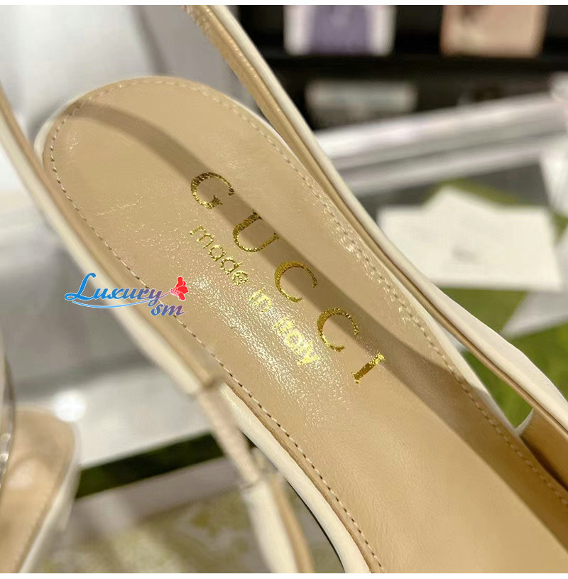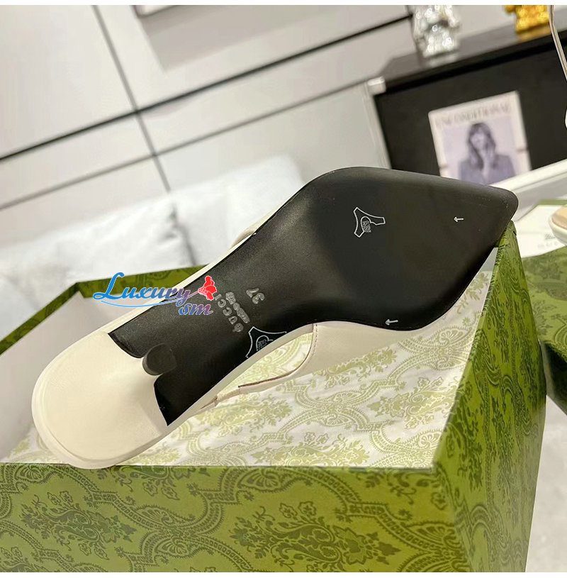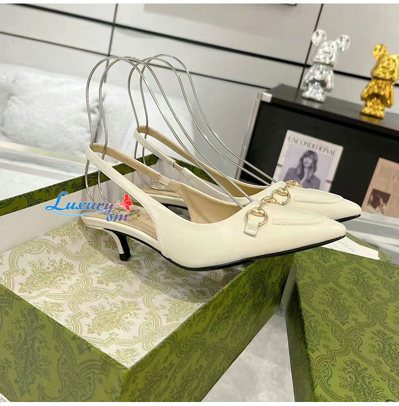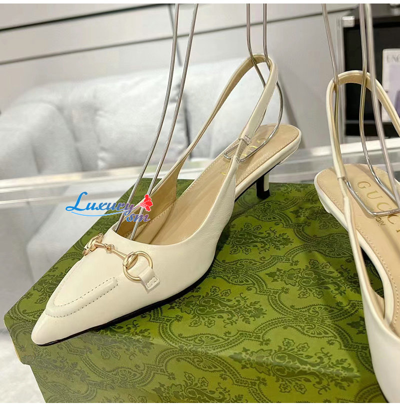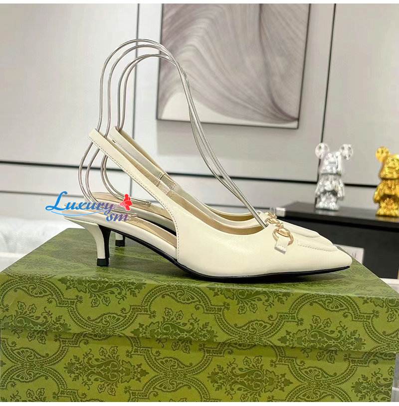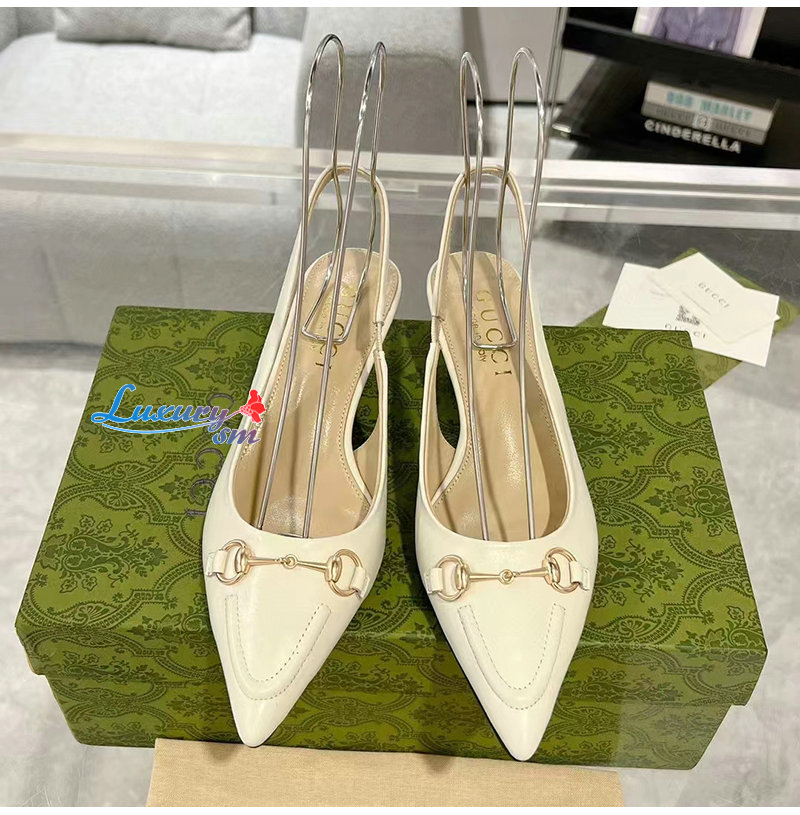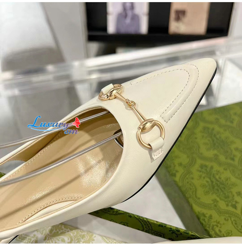 GUCCI-782407 9043 구찌 화이트 가죽 홀스빗 슬링백 펌프스