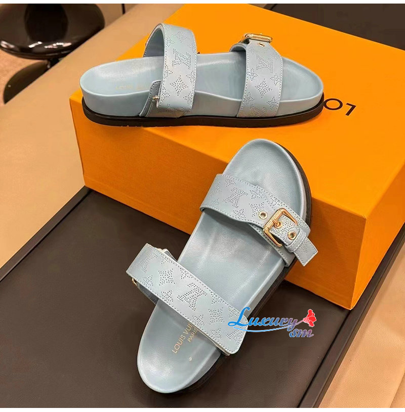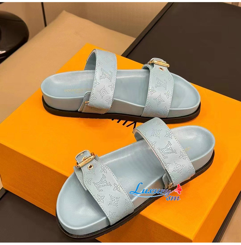 LOUIS VUITTON-1ACKJ7 루이비통 블루 모노그램 마히나 봄 디아 플랫 컴포트 뮬 여성용