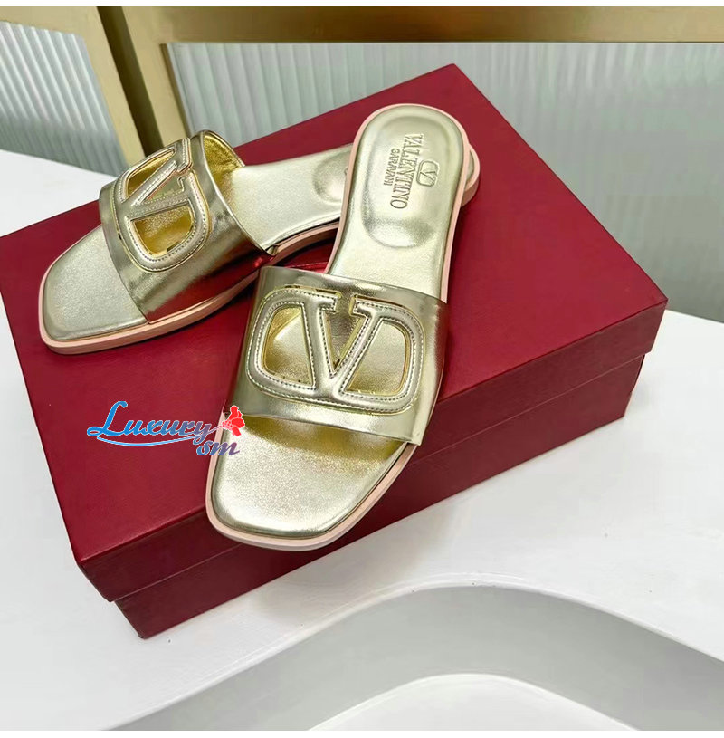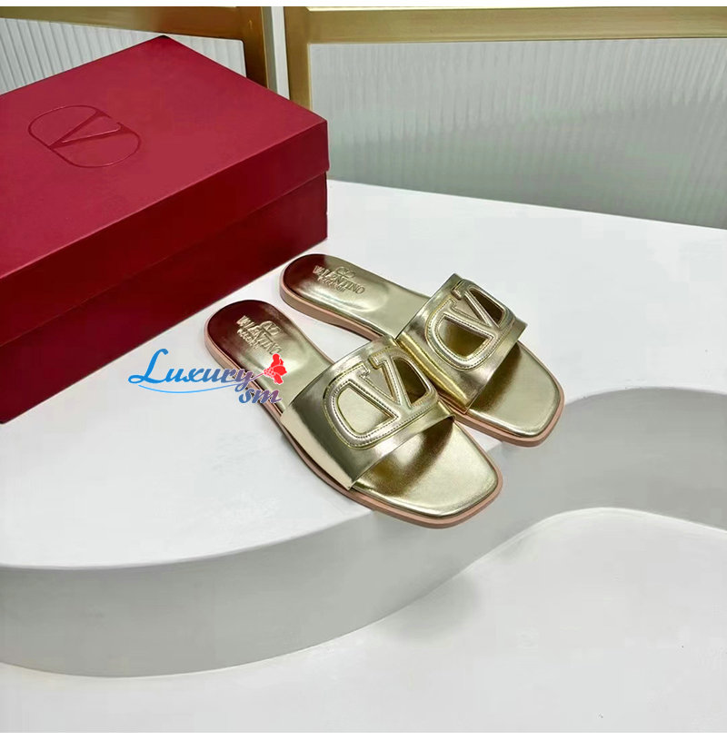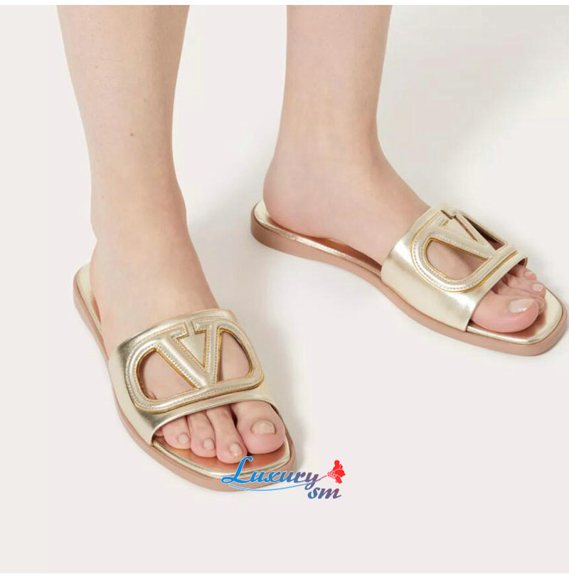 VALENTINO-4W2S0I 발렌티노 골드 브이로고 컷아웃 슬라이드 샌들 여성용