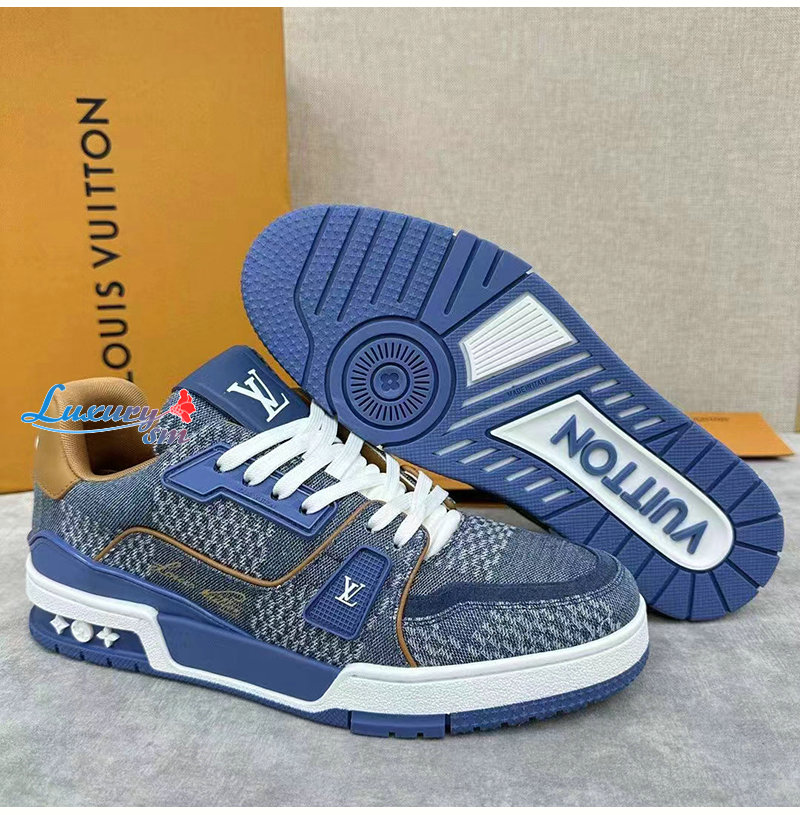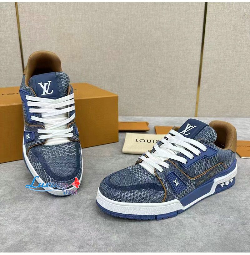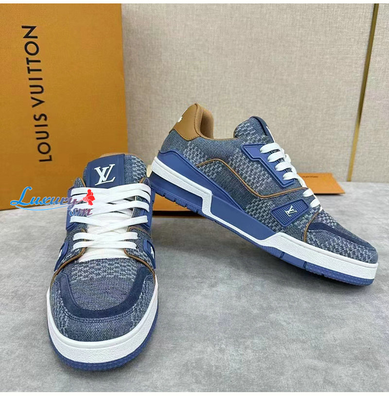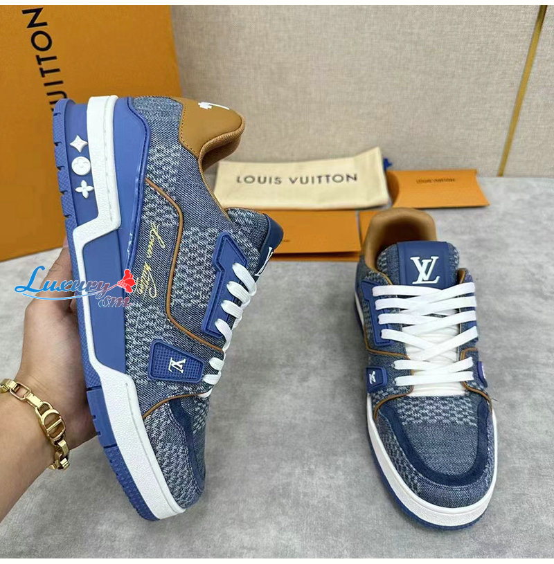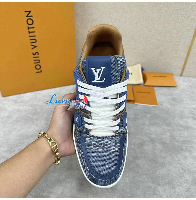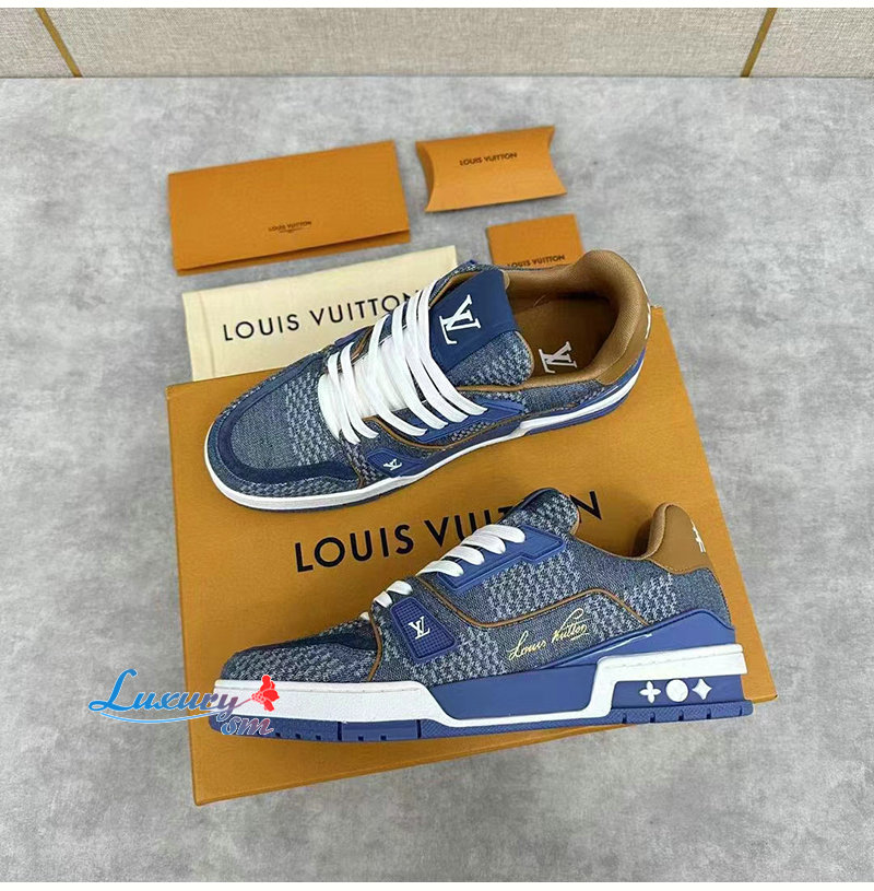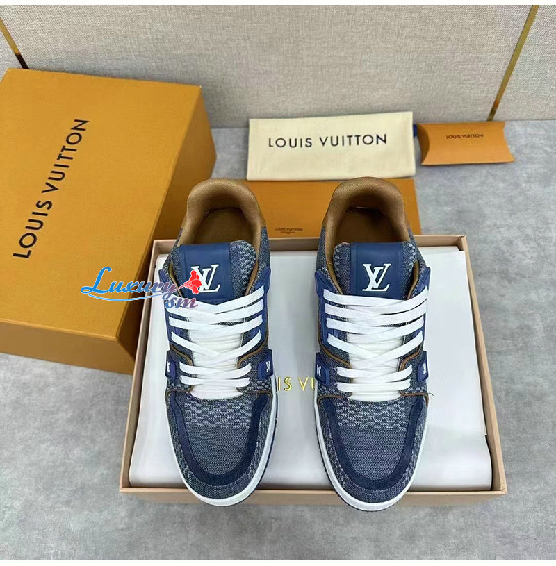 LOUIS VUITT**-1A9ZIE 루이비통 블루 모노그램 데님 LV 트레이너 스니커즈