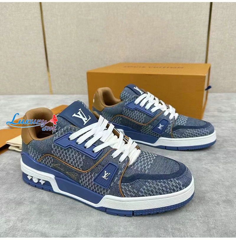 LOUIS VUITTON-1AD6DK 루이비통 블루 다미에 데님 LV 트레이너 스니커즈 남성용