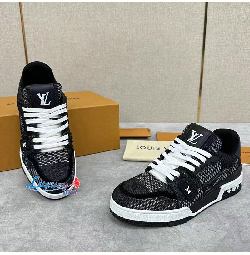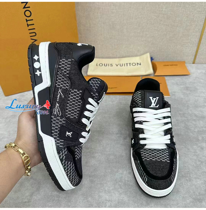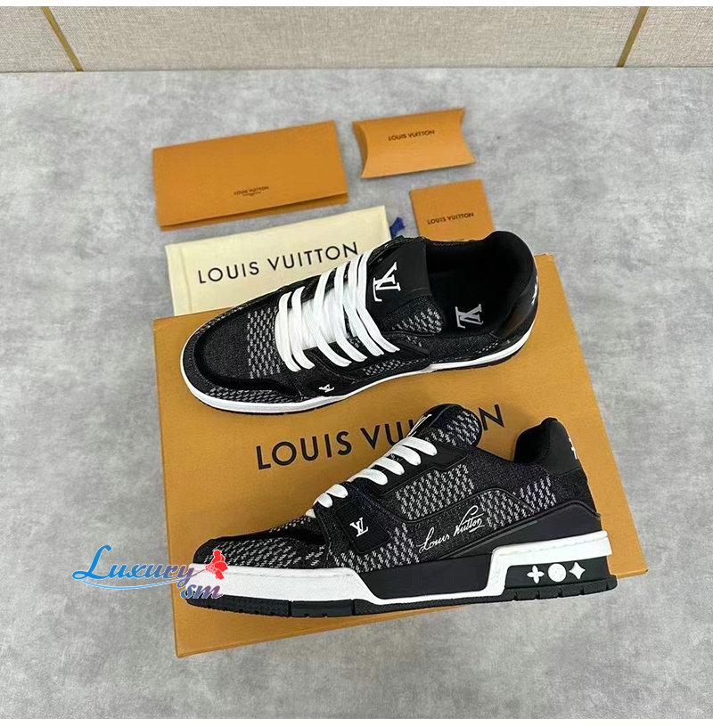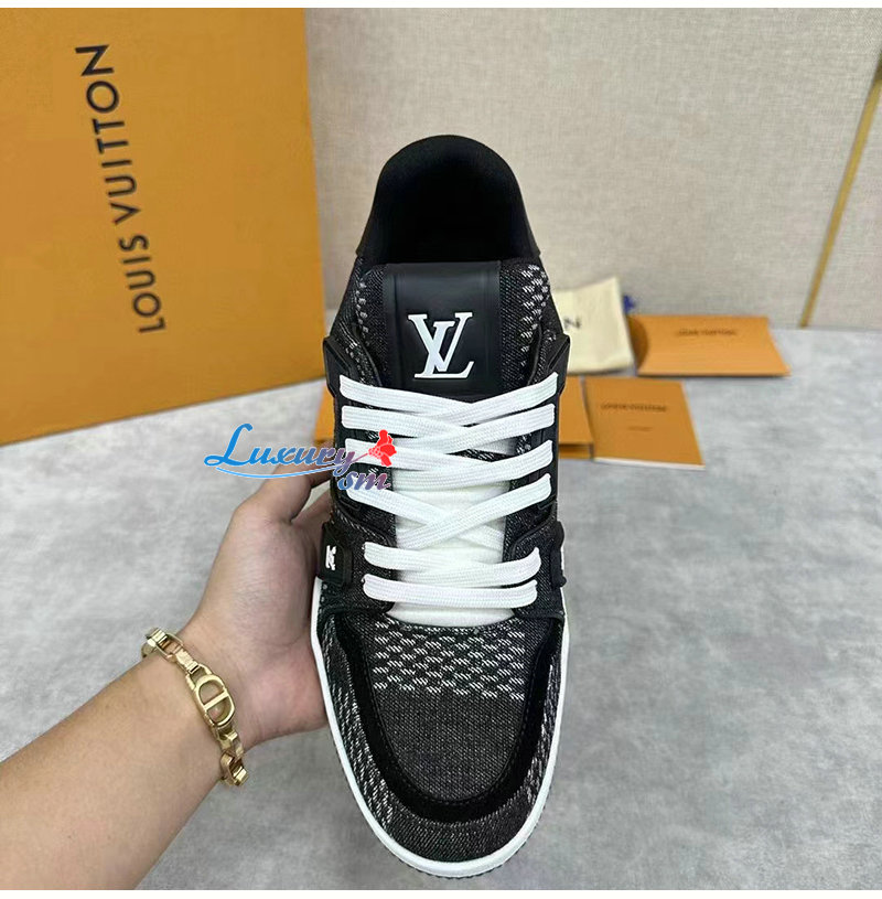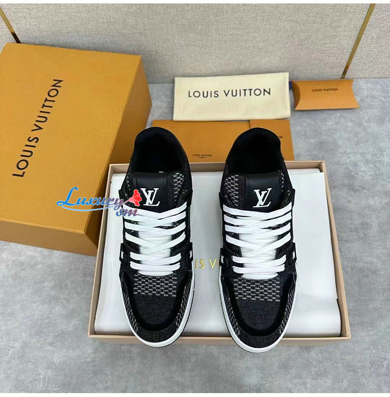 LOUIS VUITTON-1AC4ZD 루이비통 블랙 모노그램 데님 LV 트레이너 스니커즈 남성용