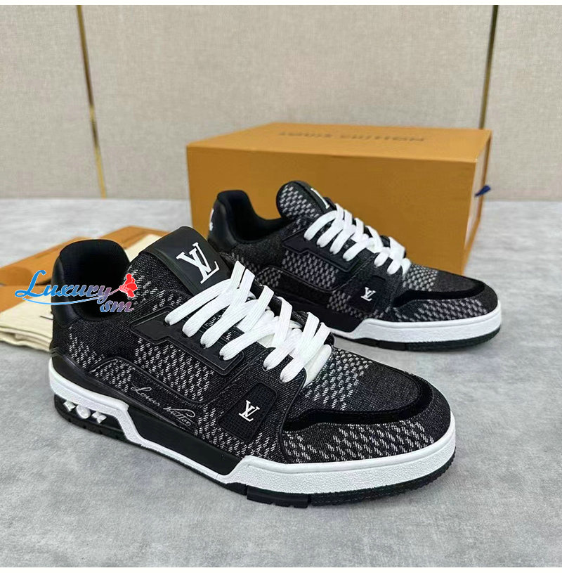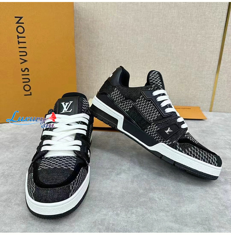 LOUIS VUITTON-1AD6DZ 루이비통 블랙 다미에 데님 LV 트레이너 스니커즈 남성용