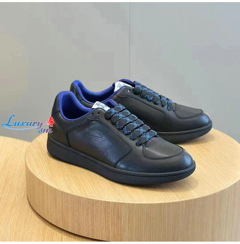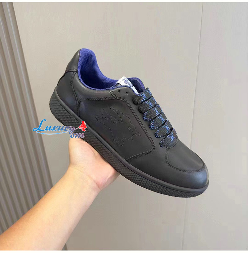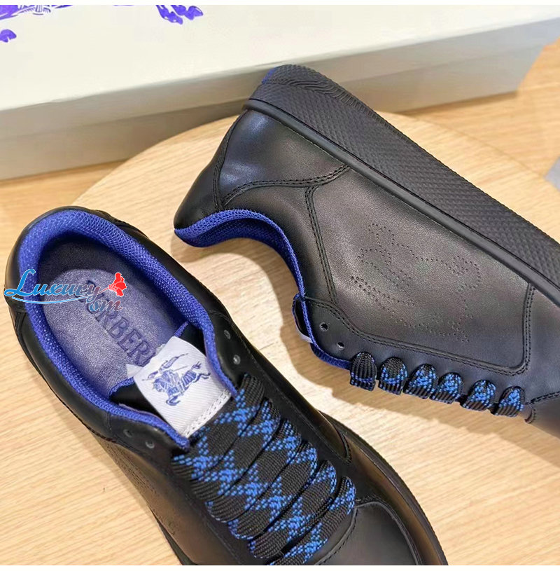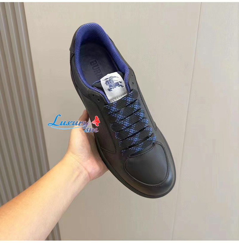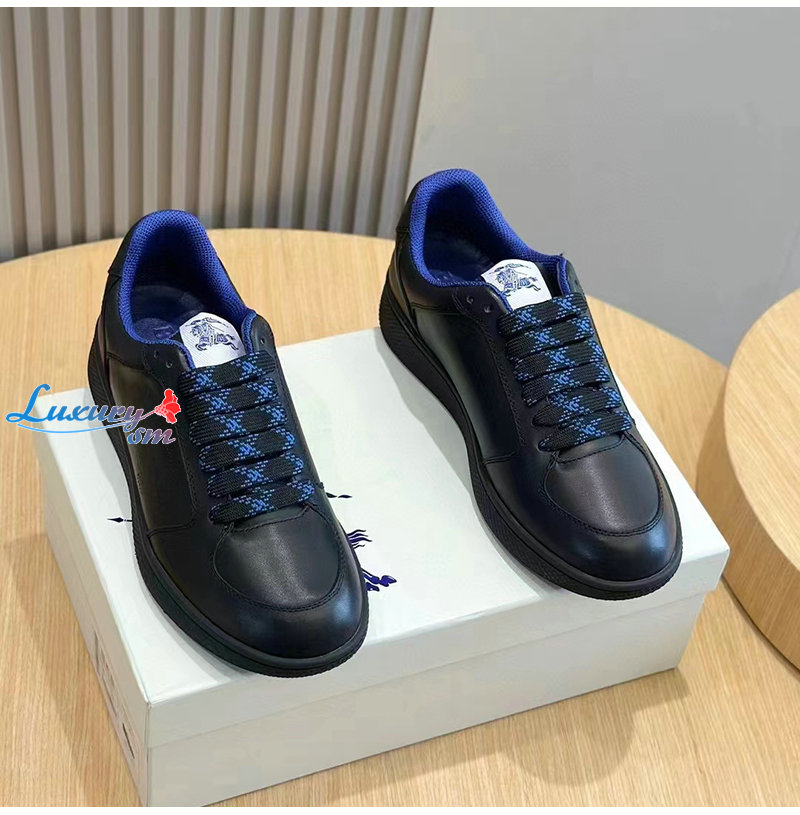 BURBERRY-80956921 버버리 블랙 레더 스톡 스니커즈 남성용