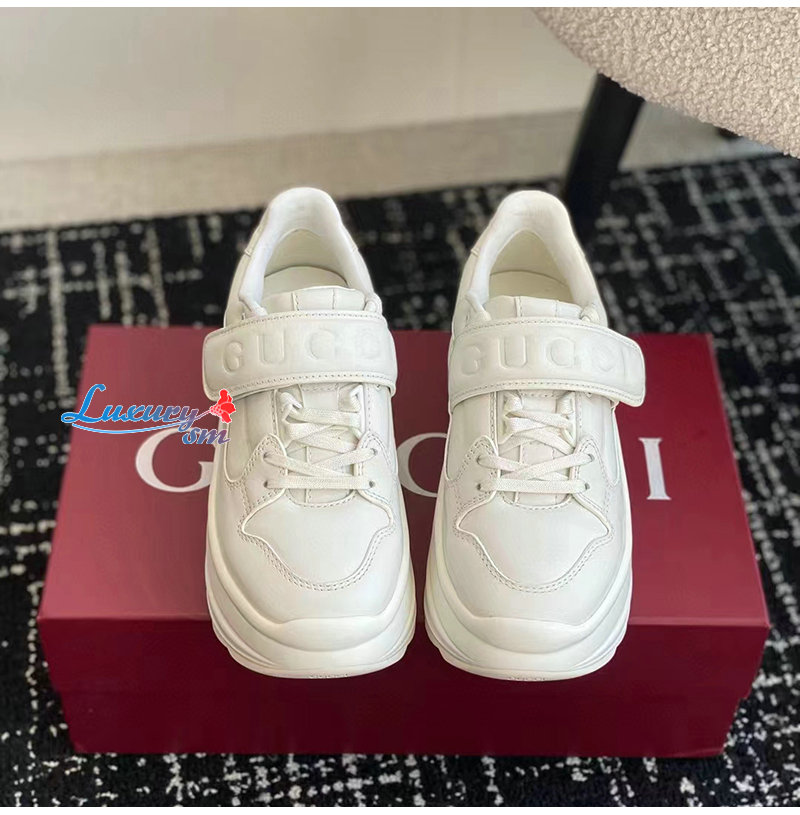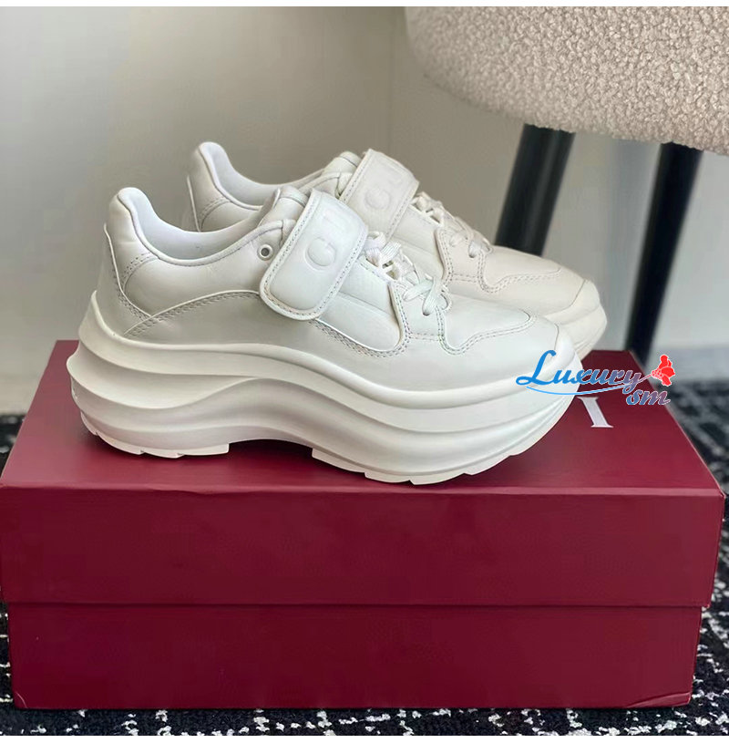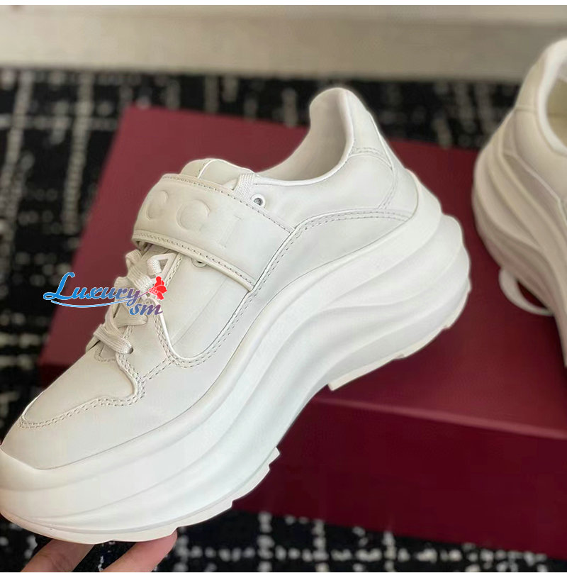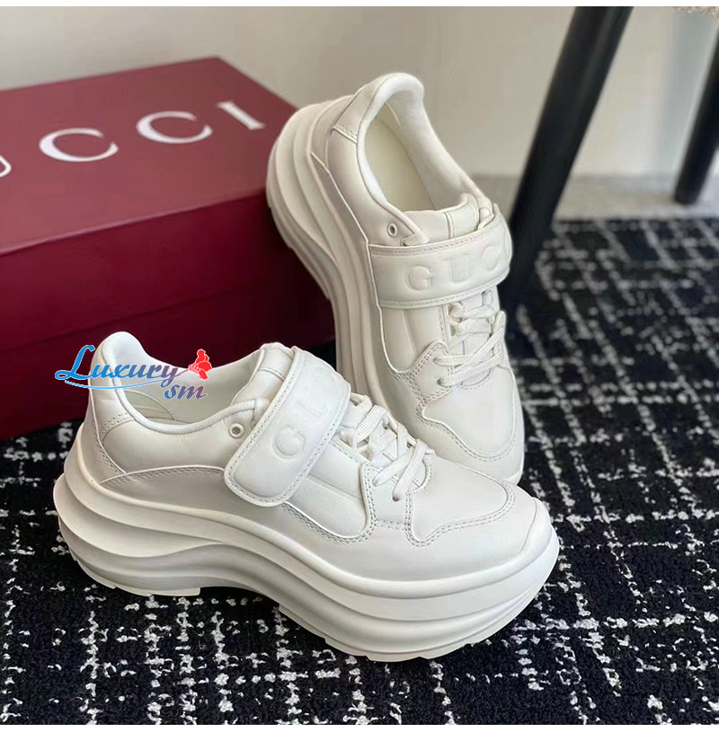 GUCCI-805708 9014 구찌 화이트 가죽 구찌 웨이브 웨지 스니커즈 여성용
