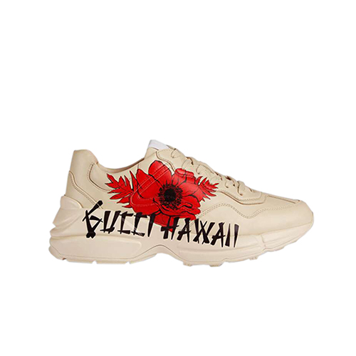 GUCCI-631708 9522 구찌 롸이톤 아이보리 가죽 Gucci Hawaii 프린트 스니커즈 남여공용