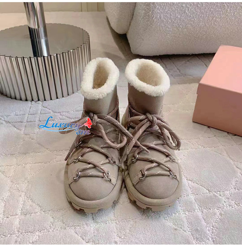 MIUMIU-5T314E 미우미우 베이지 스웨이드 가죽 부티 여성용