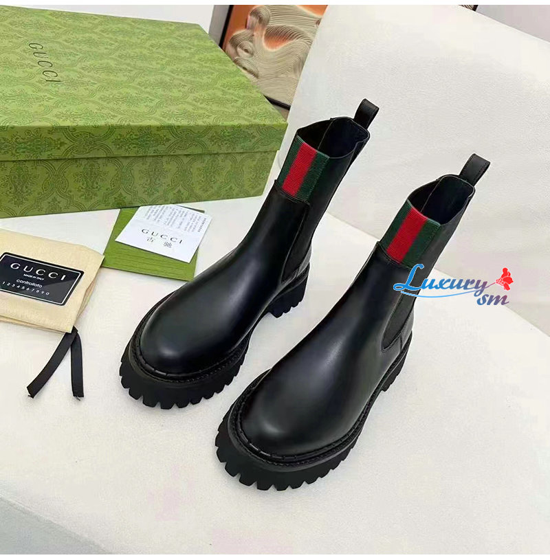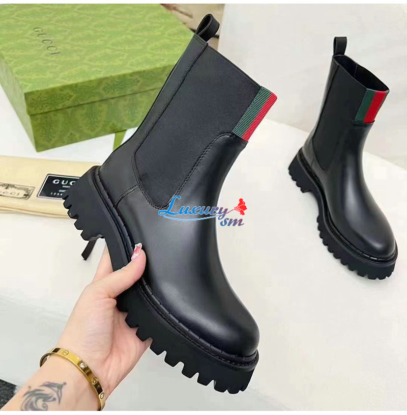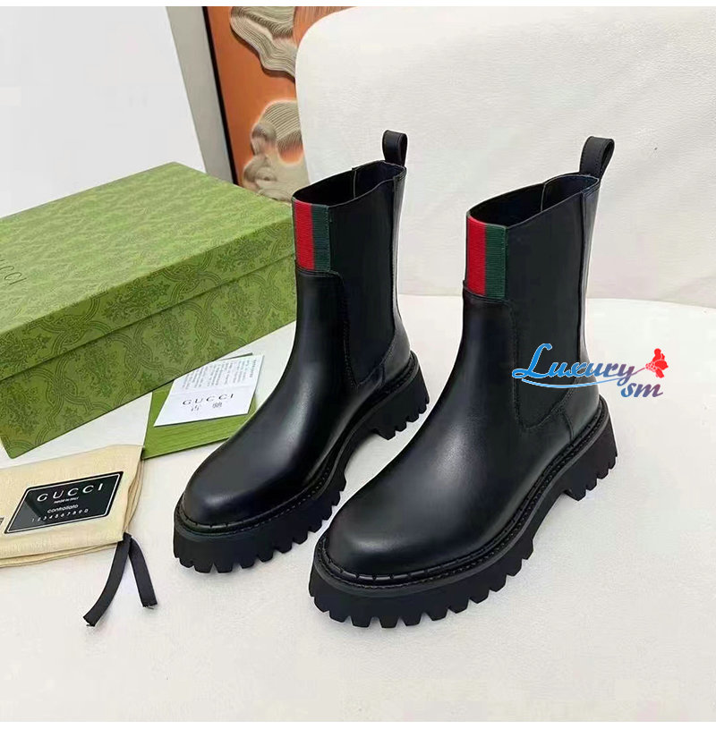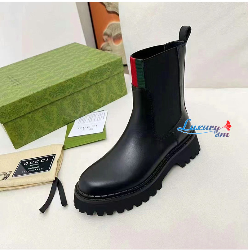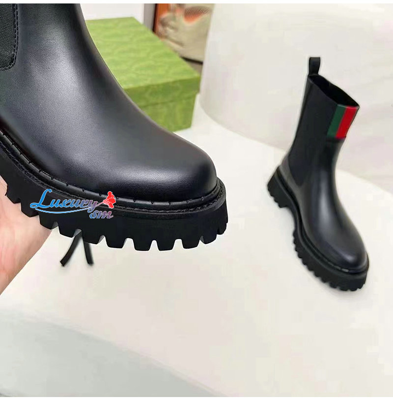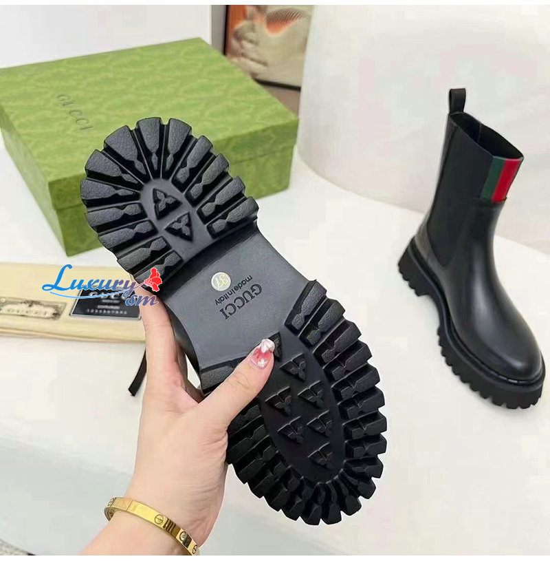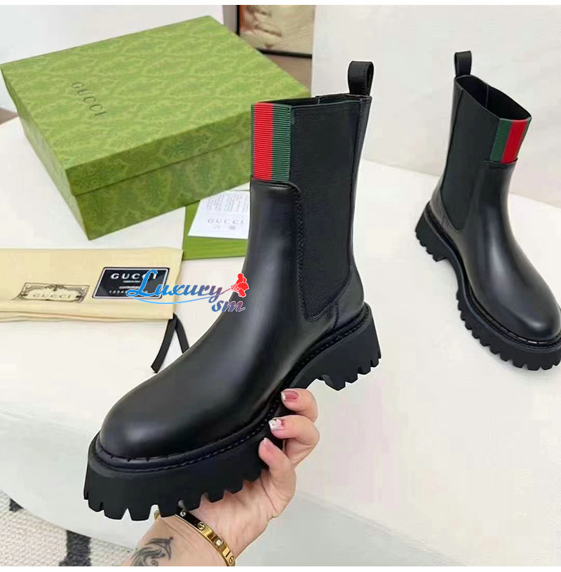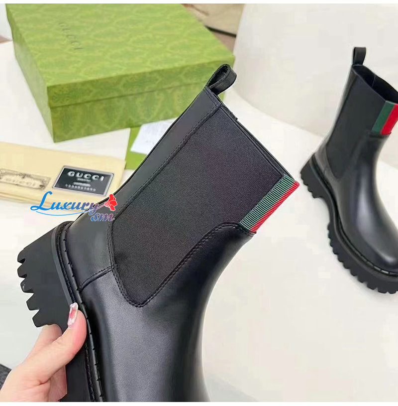 GUCCI-806398 1052 구찌 블랙 가죽 웹(Web) 부츠 여성용