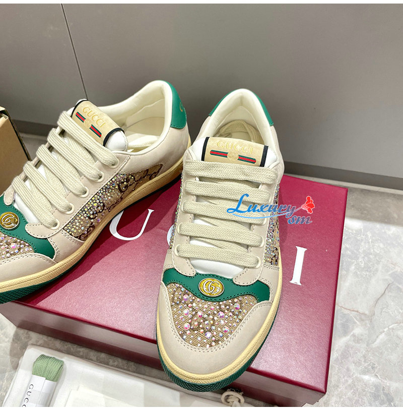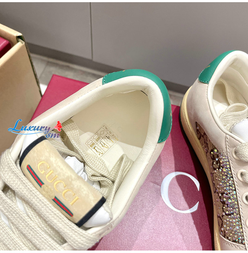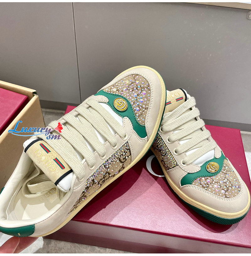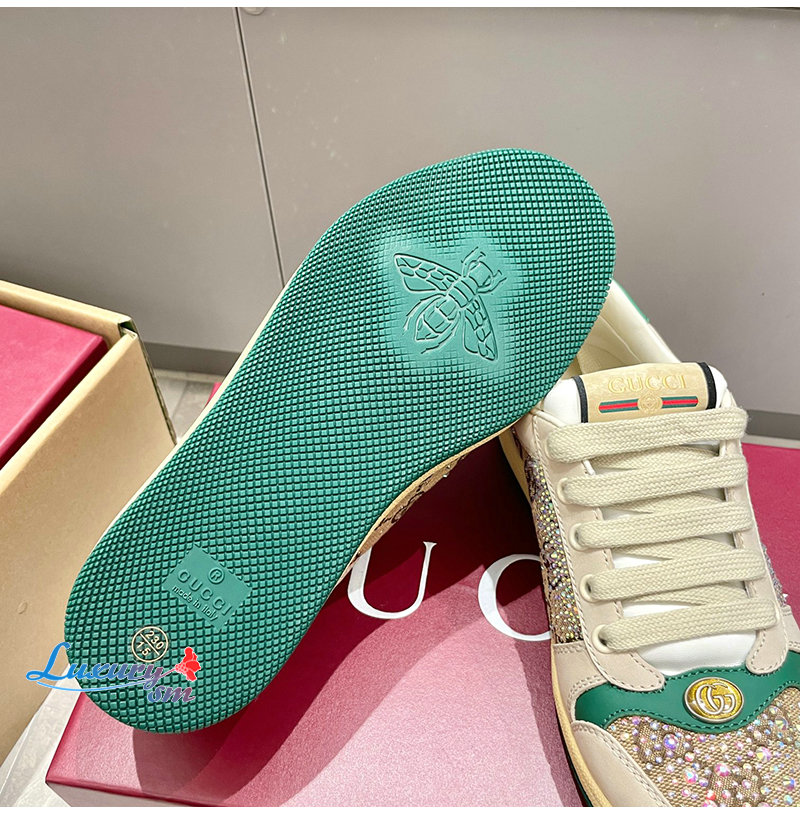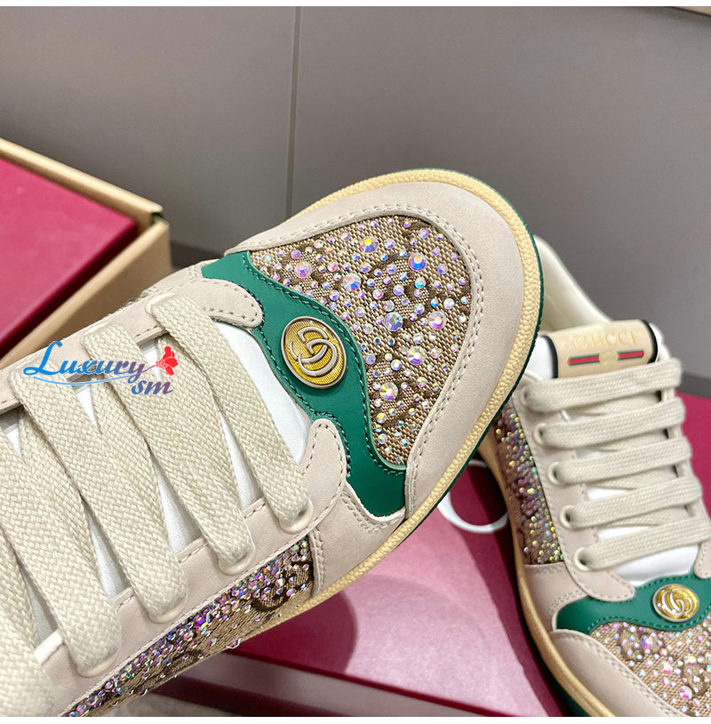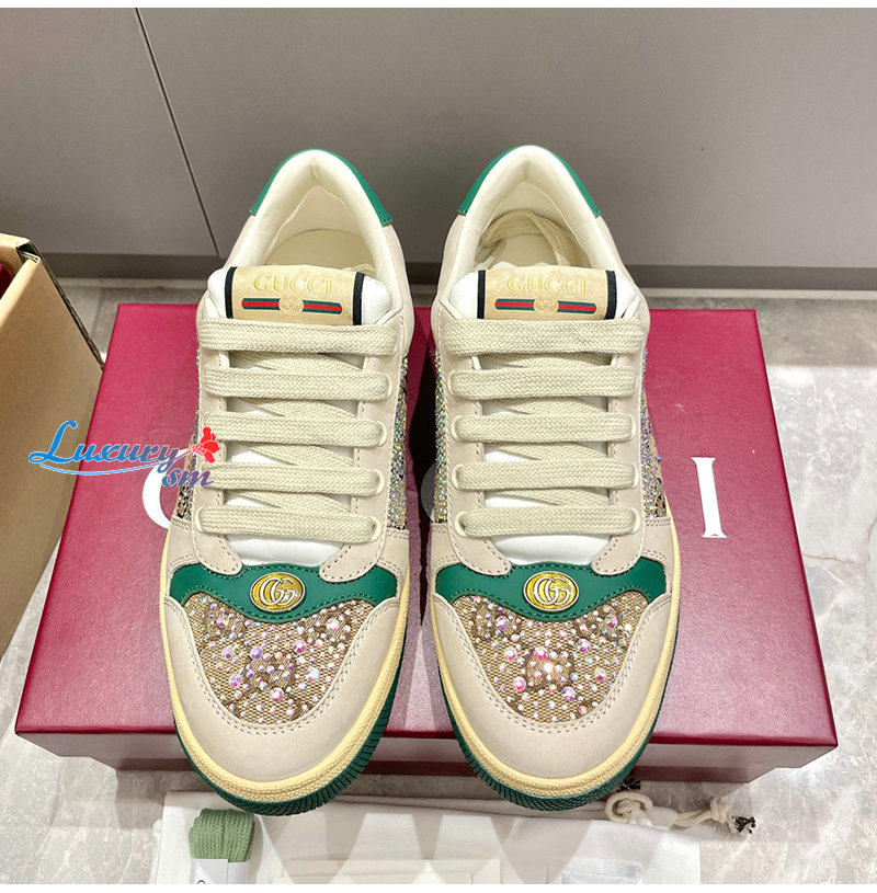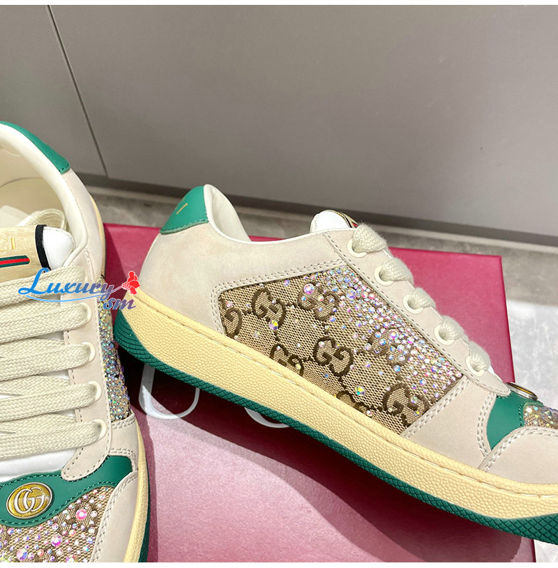 GUCCI-812041 9541 구찌 아이보리 크리스털 장식 스크리너 스니커즈 여성용
