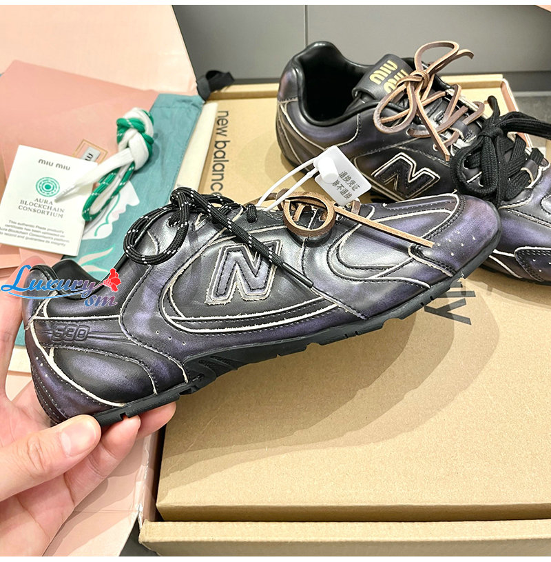 MIUMIU-5E165E 미우미우 블랙 New Balance X Miu Miu 530 SL 가죽 스니커즈 남여공용
