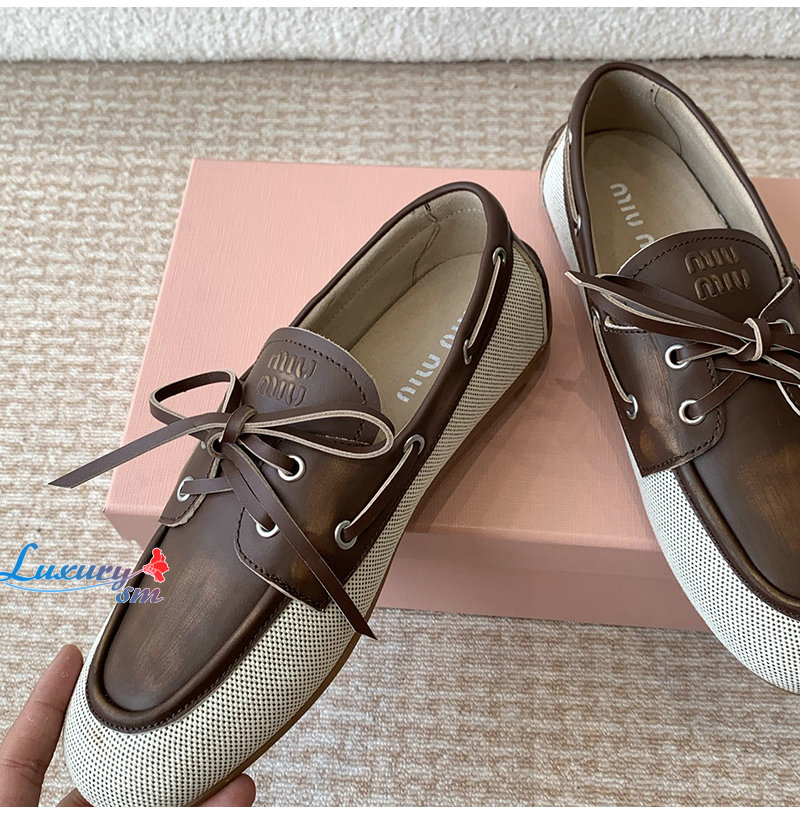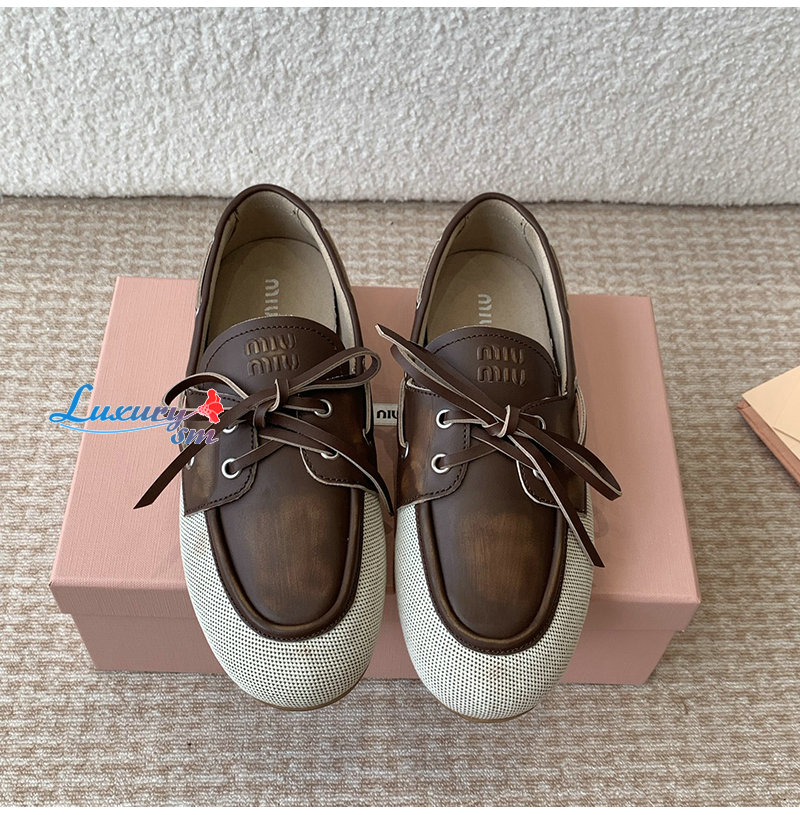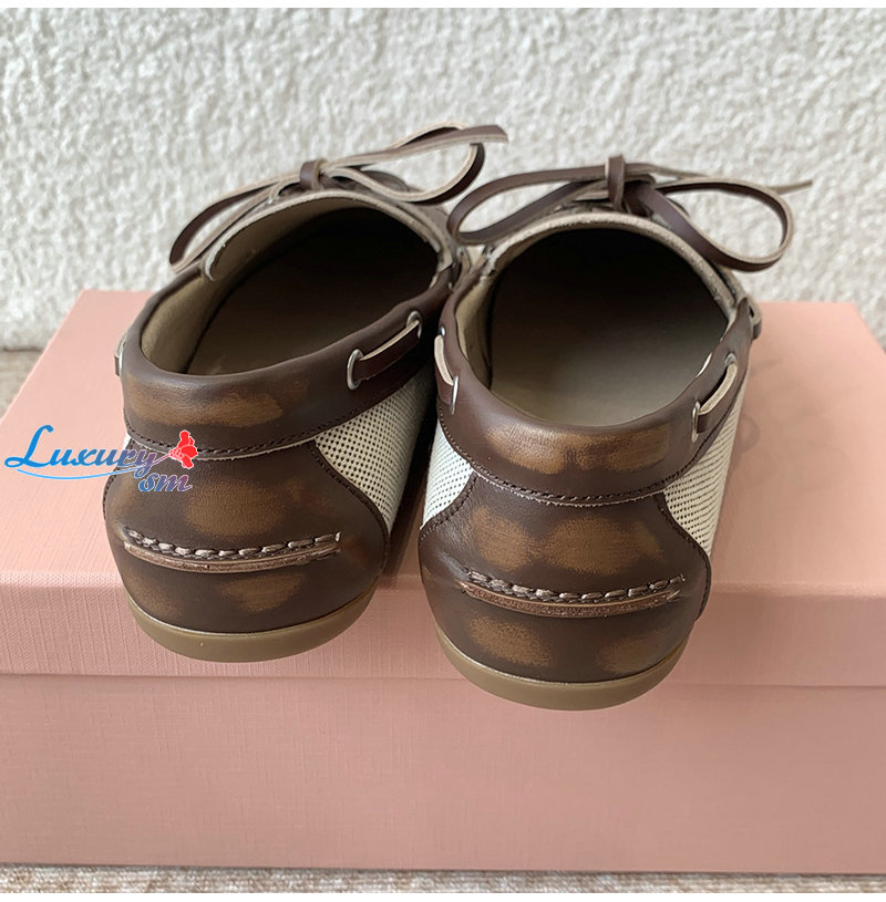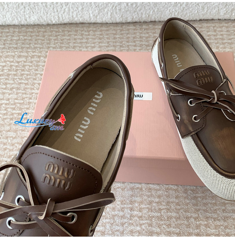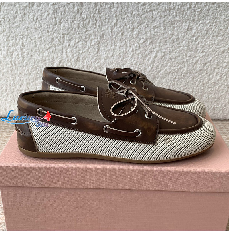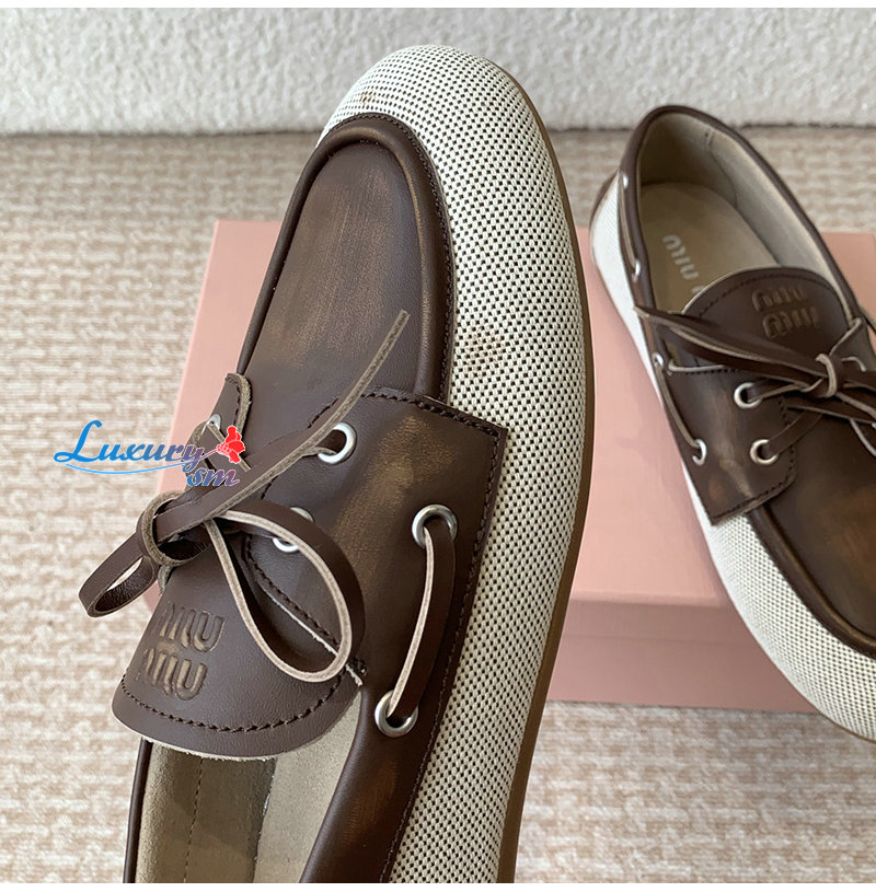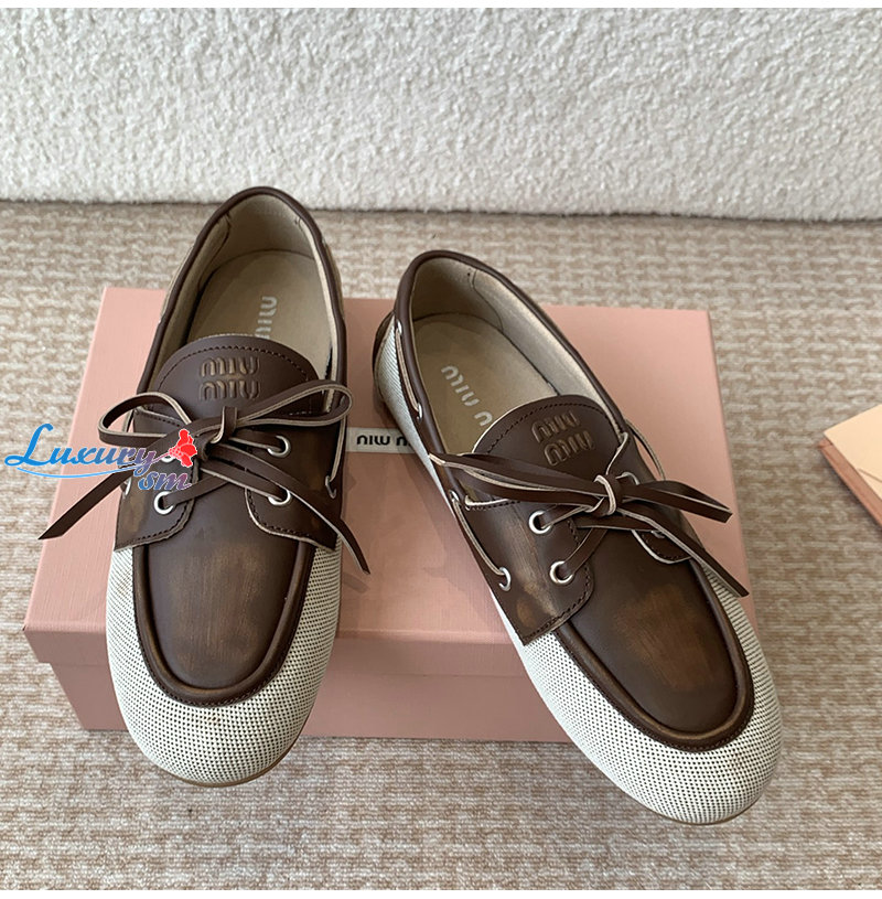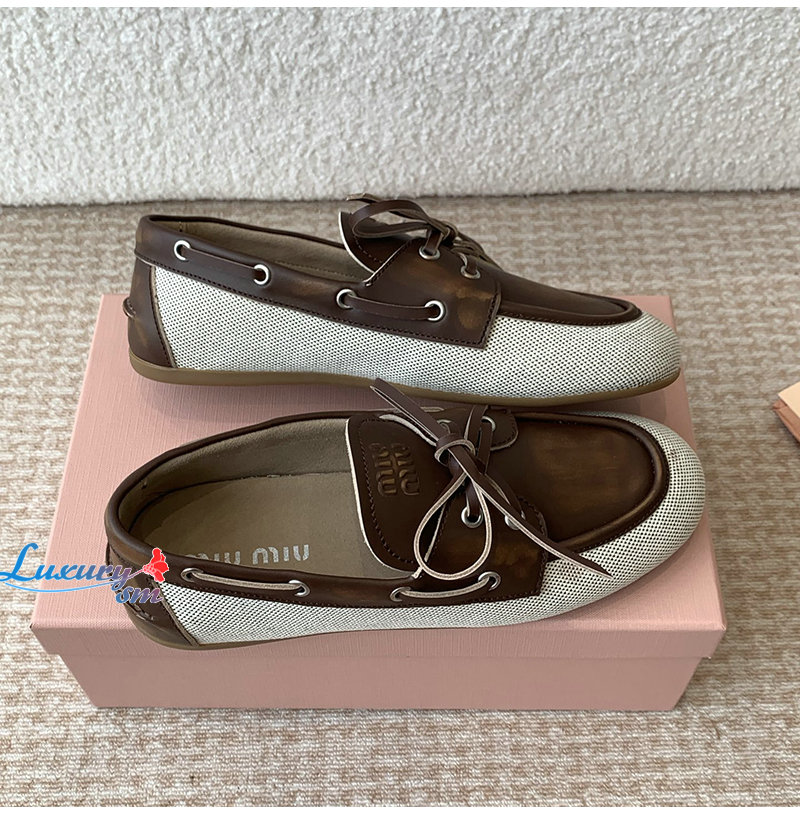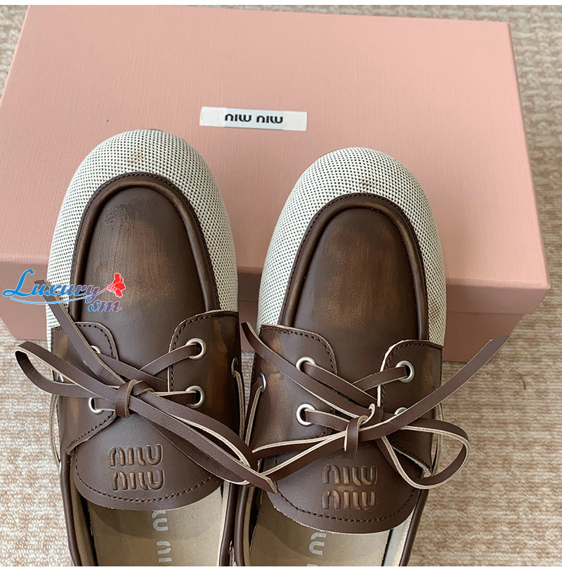 MIUMIU-5D376E 미우미우 베이지/브라운 보트 슈즈 여성용