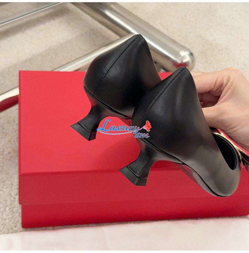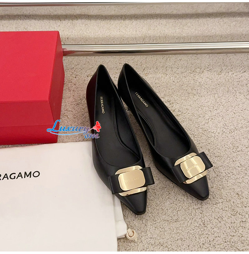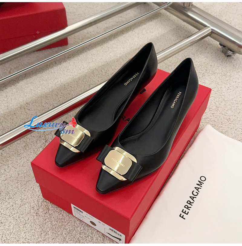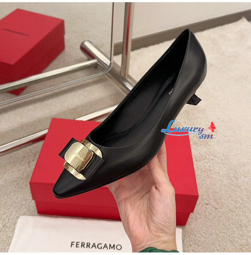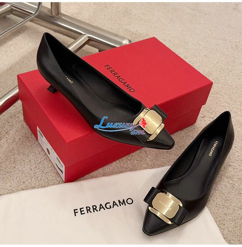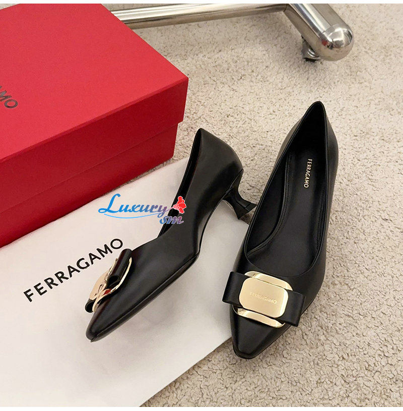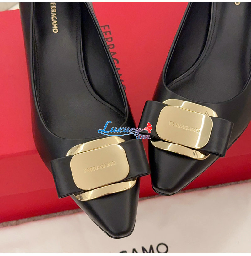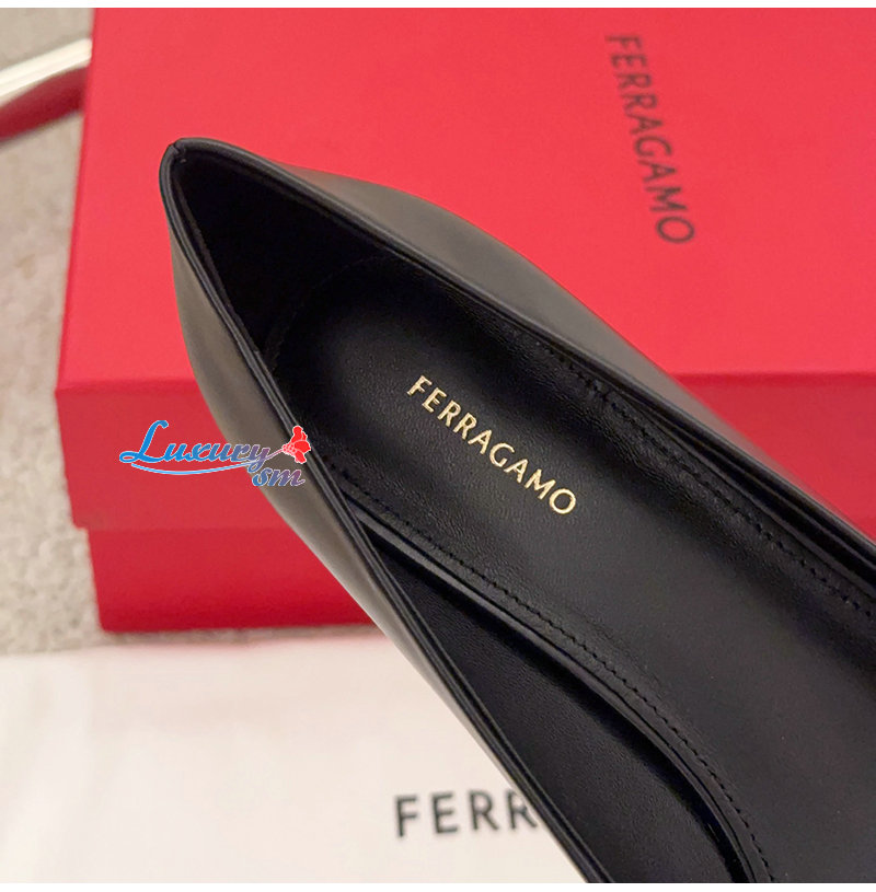 Ferragamo-01H450 페라가모 블랙 뉴 바라 플레이트 키튼 힐 펌프스