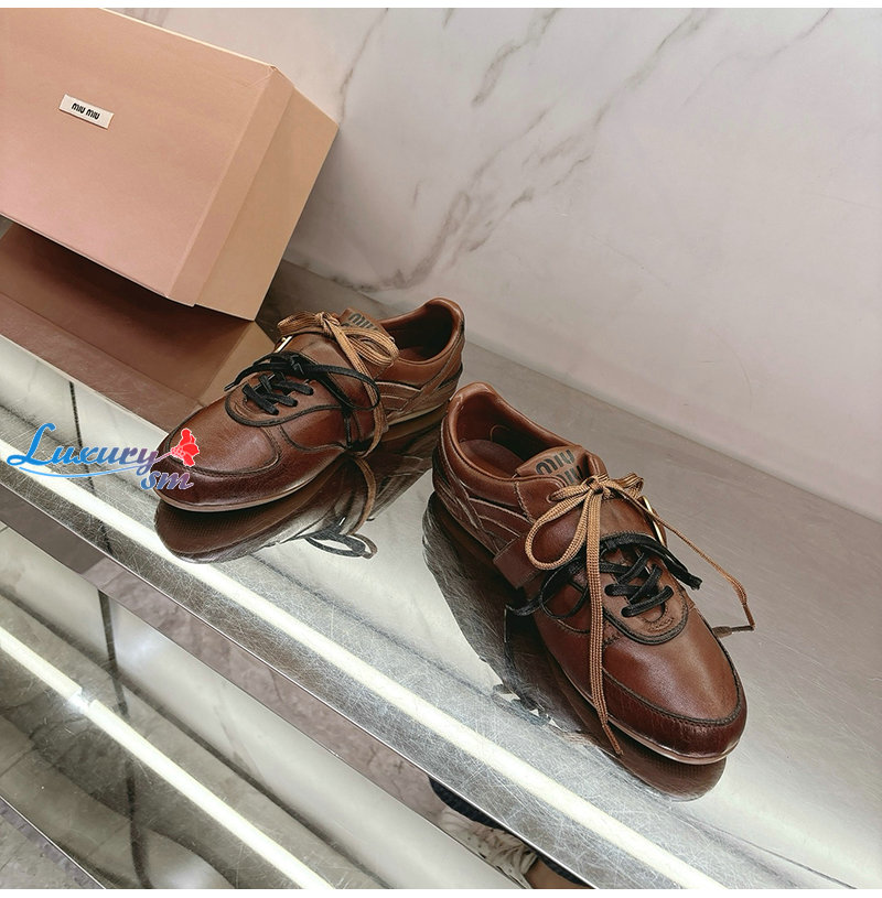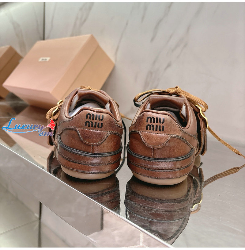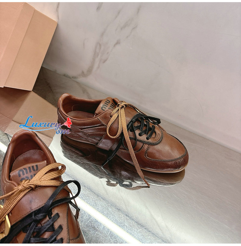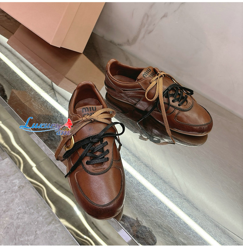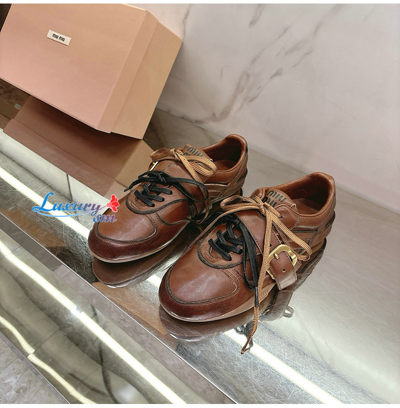 MIUMIU-04162 미우미우 브라운 송아지 가죽 스니커즈 여성용