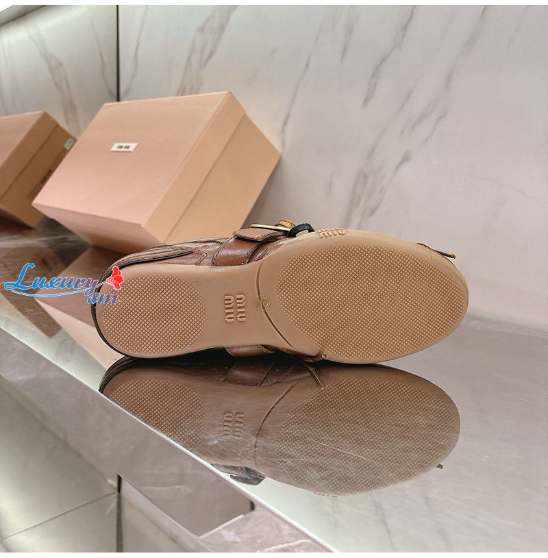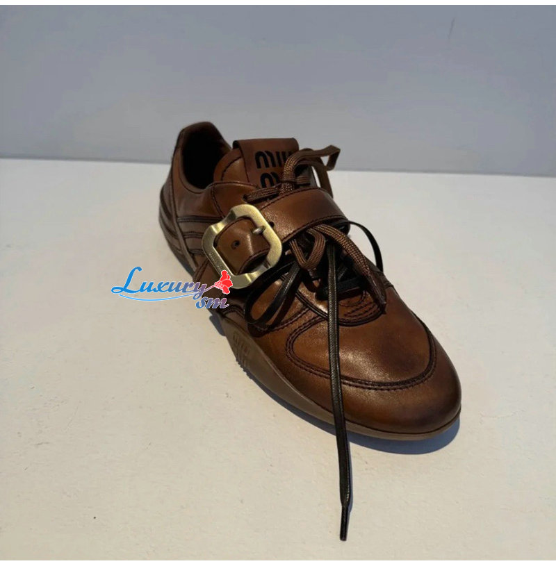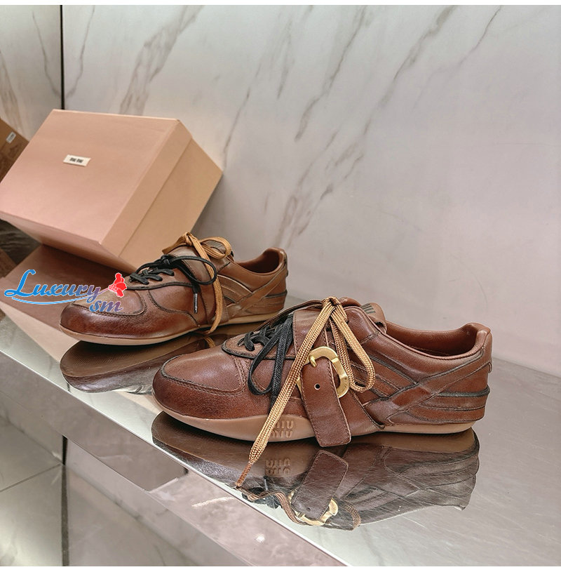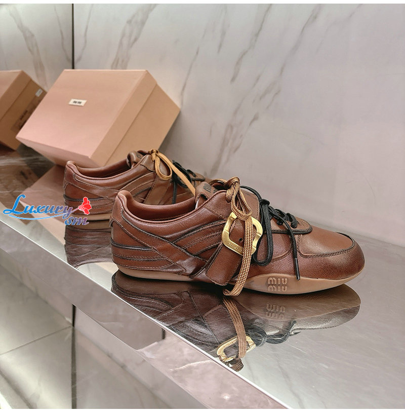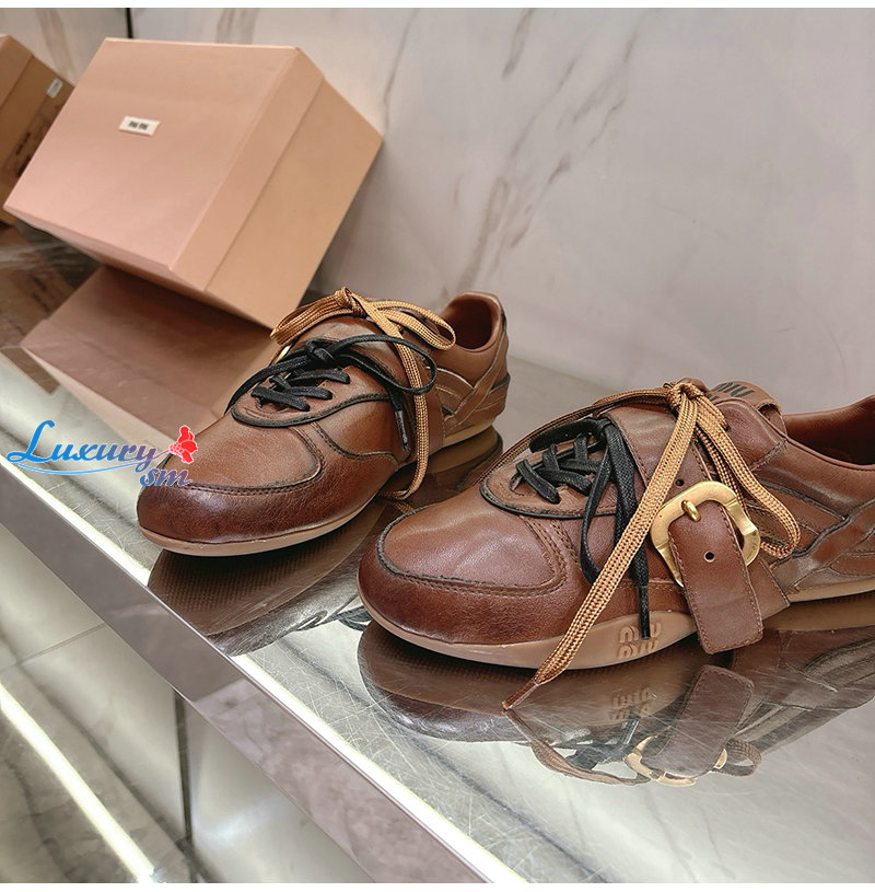 MIUMIU-04162 미우미우 브라운 송아지 가죽 스니커즈 여성용