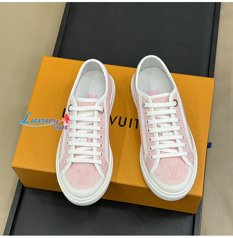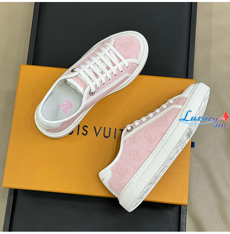 LOUIS VUITTON-1AGYFO 루이비통 핑크 모노그램 데님 LV 라군 스니커즈 여성용