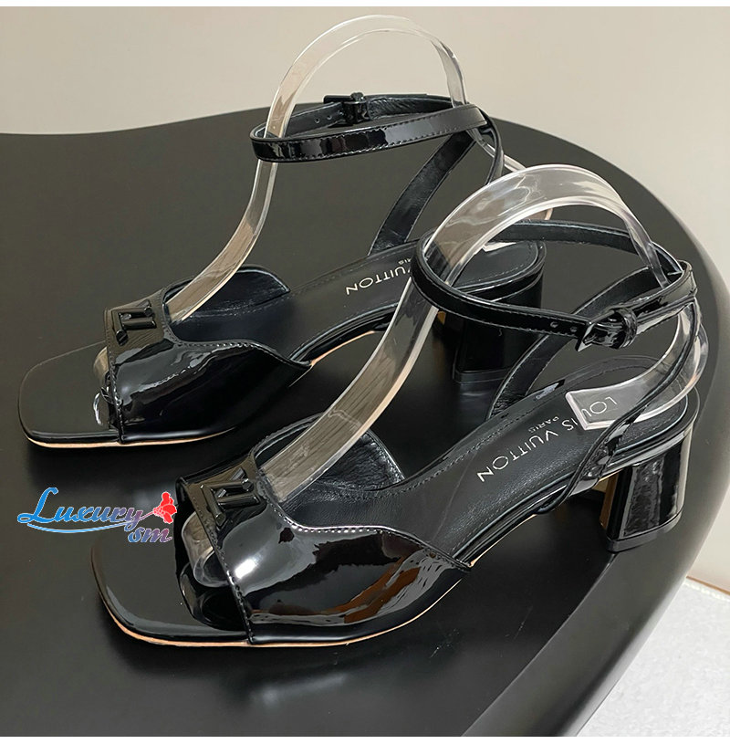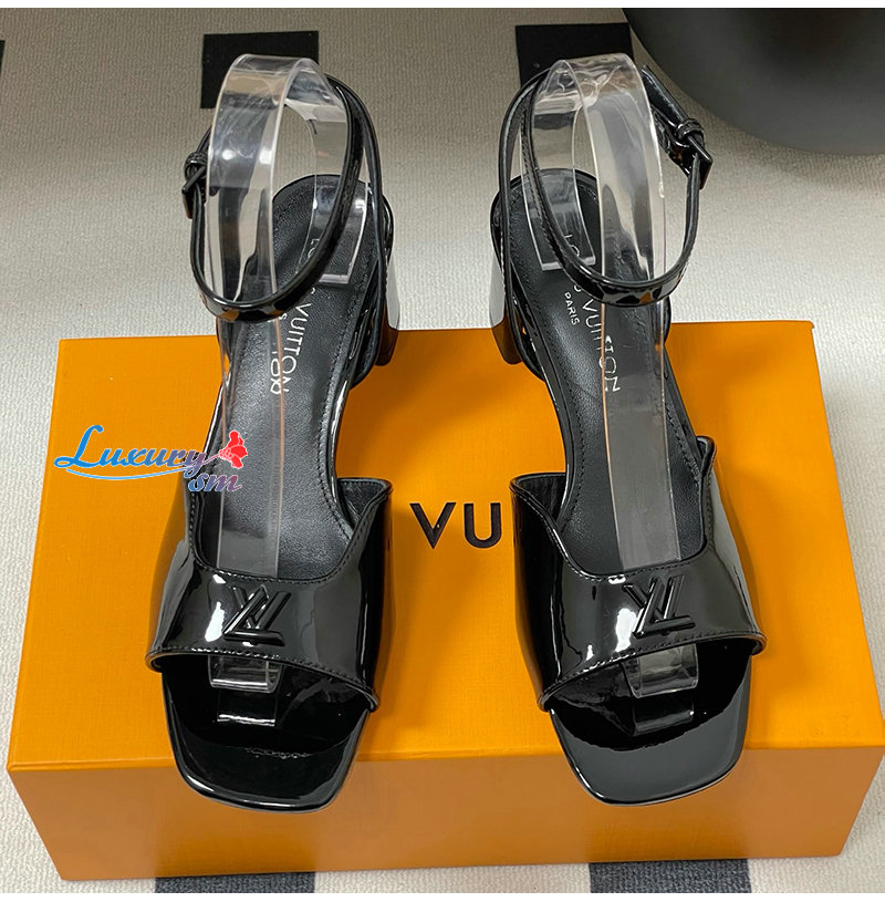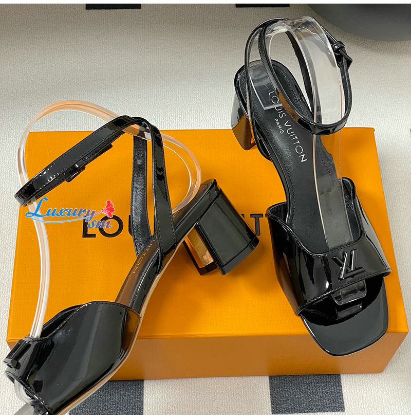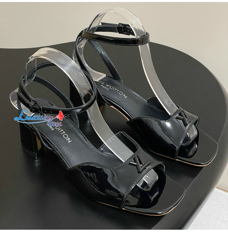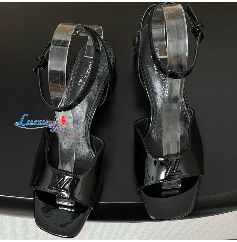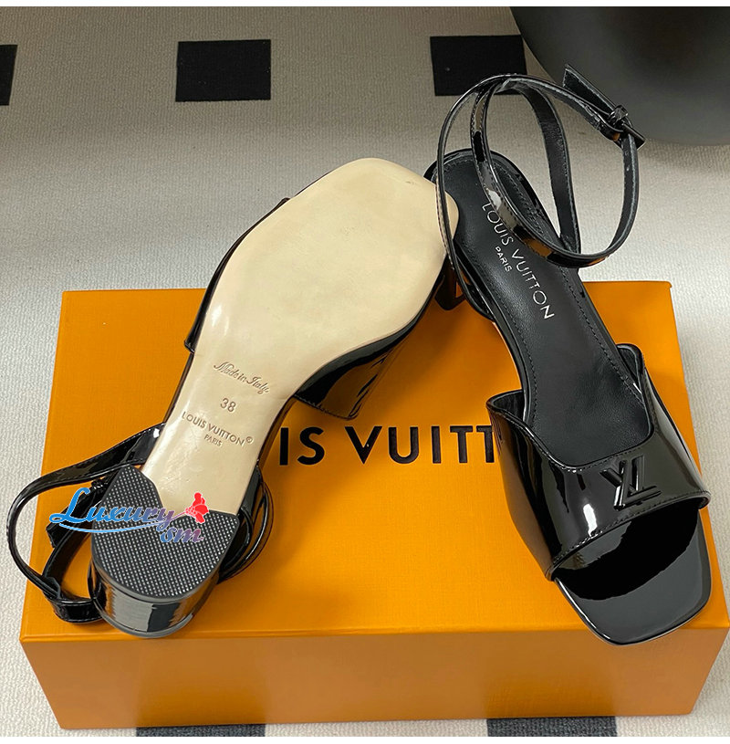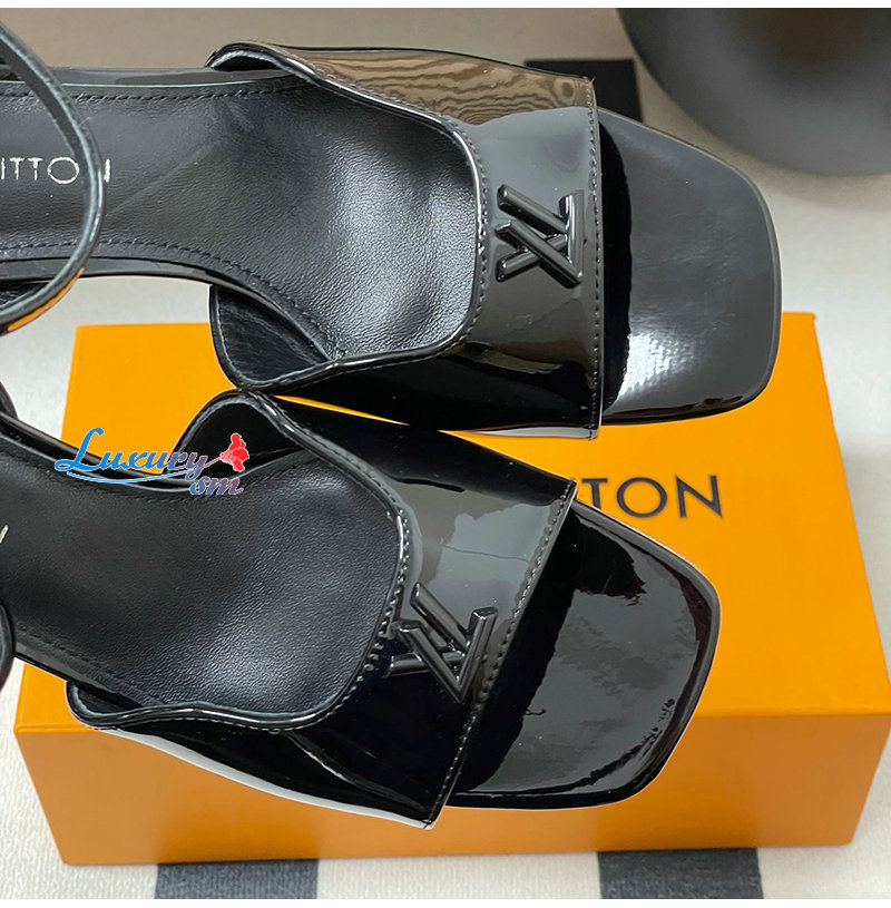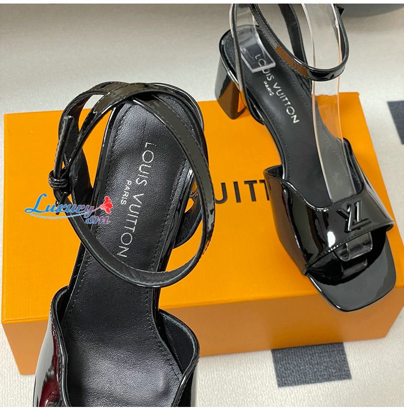 LOUIS VUITTON-1AGUP1 루이비통 블랙 페이턴트 카프스킨 스윙 샌들