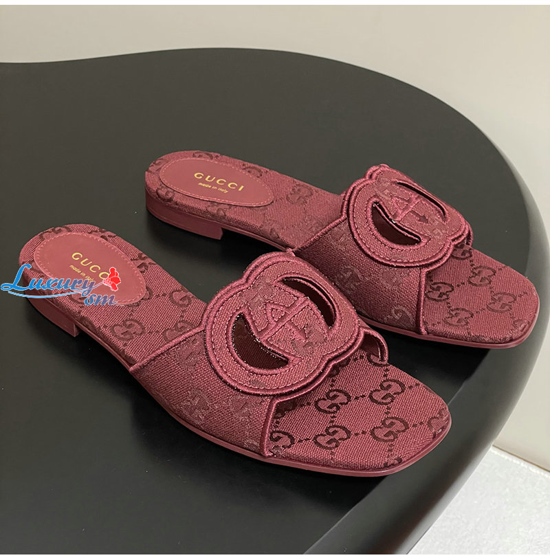 GUCCI-790447 8549 구찌 레드 인터로킹 G 슬라이드 샌들