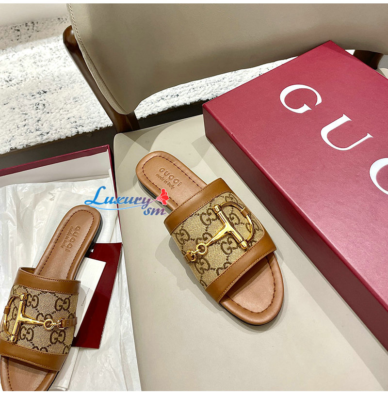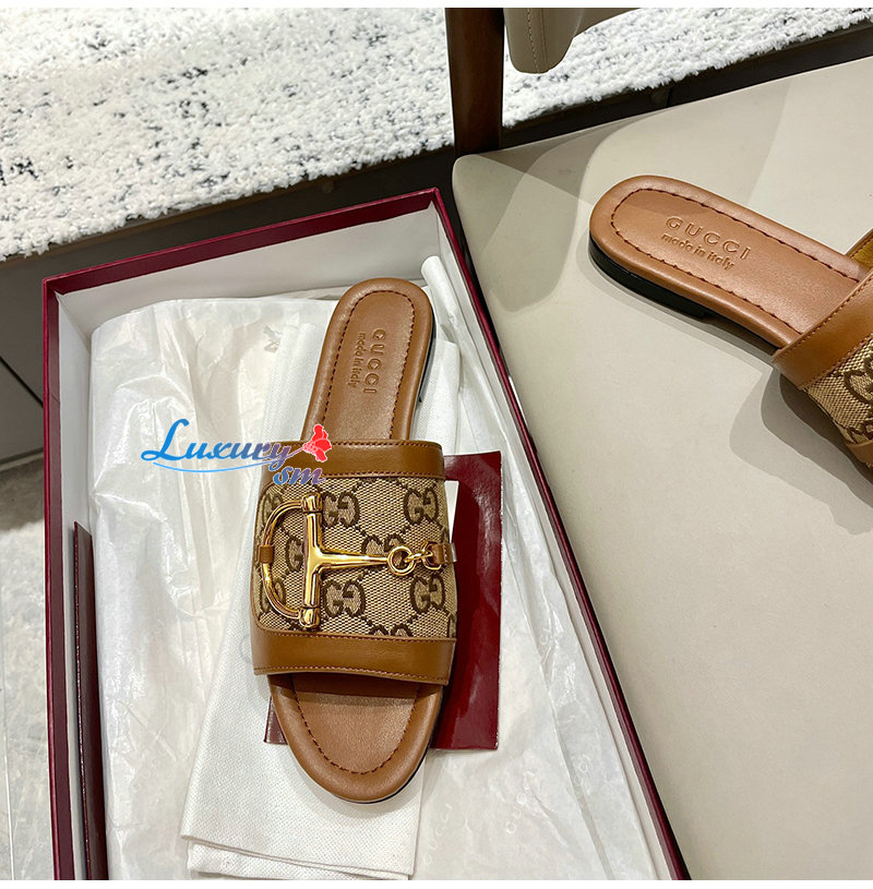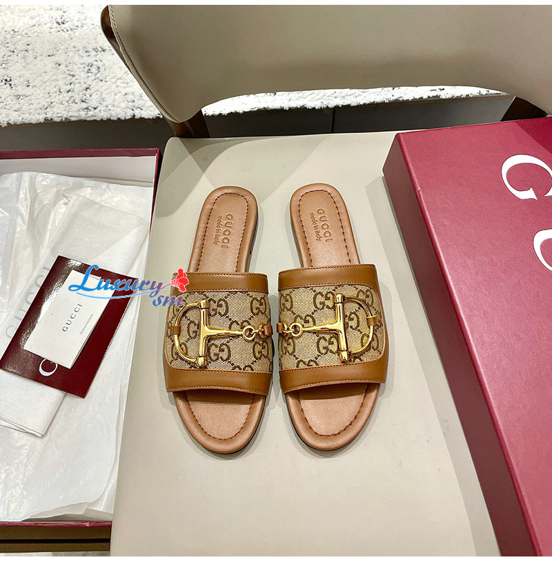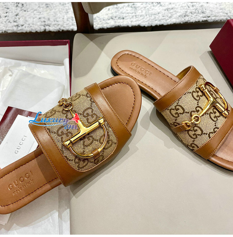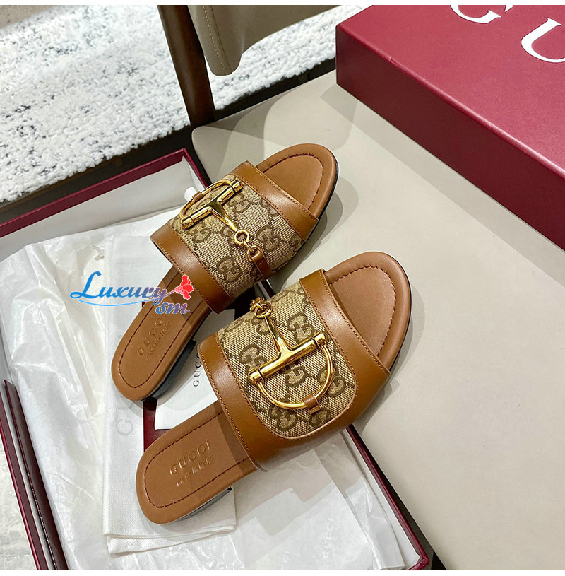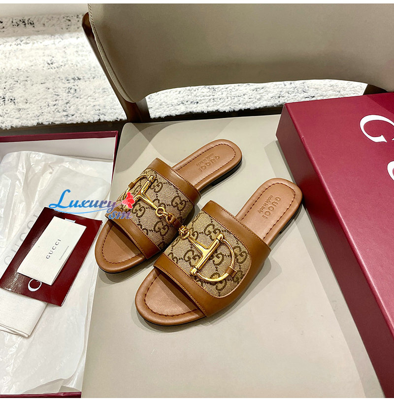 GUCCI-834427 2747 구찌 브라운 홀스빗 슬라이드 샌들 여성용