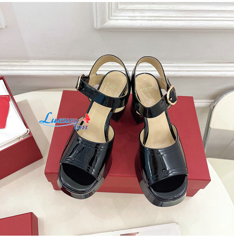 VALENTINO-7W2S0MI 발렌티노 화이트 포셋 폴리시드 카프스킨 플랫폼 샌들