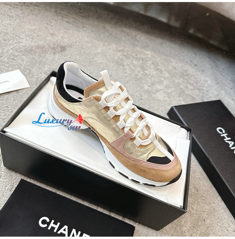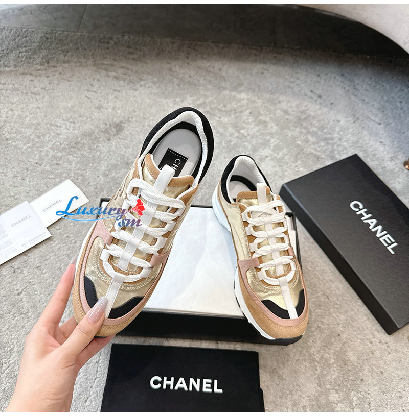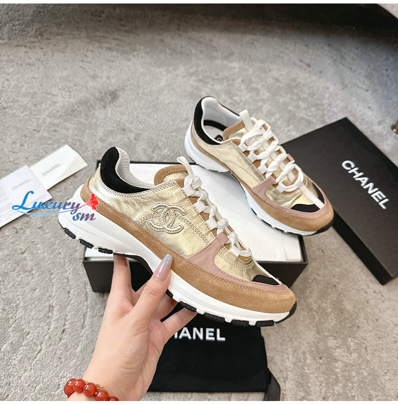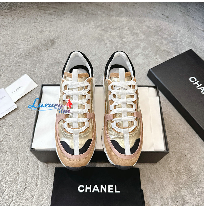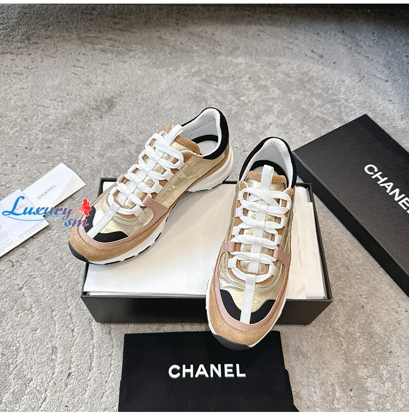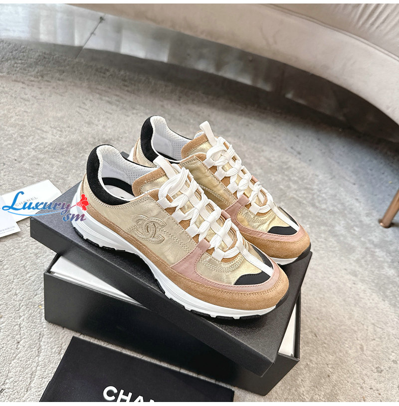 CHANEL-G46609 샤넬 골드 카프스킨 스니커즈 여성용