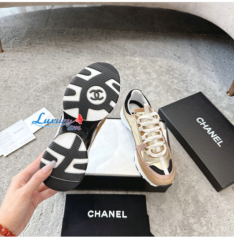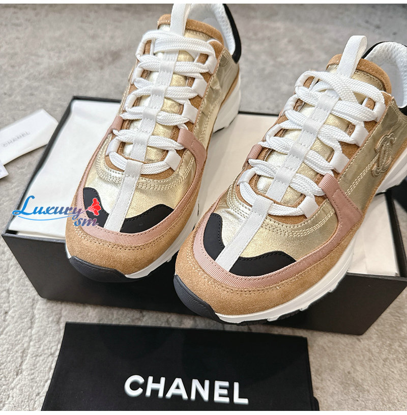 CHANEL-G46609 샤넬 골드 카프스킨 스니커즈