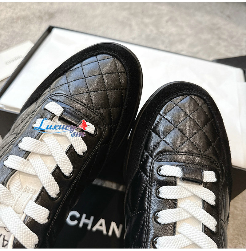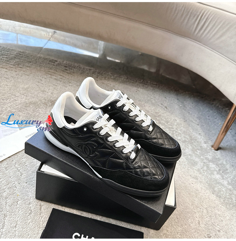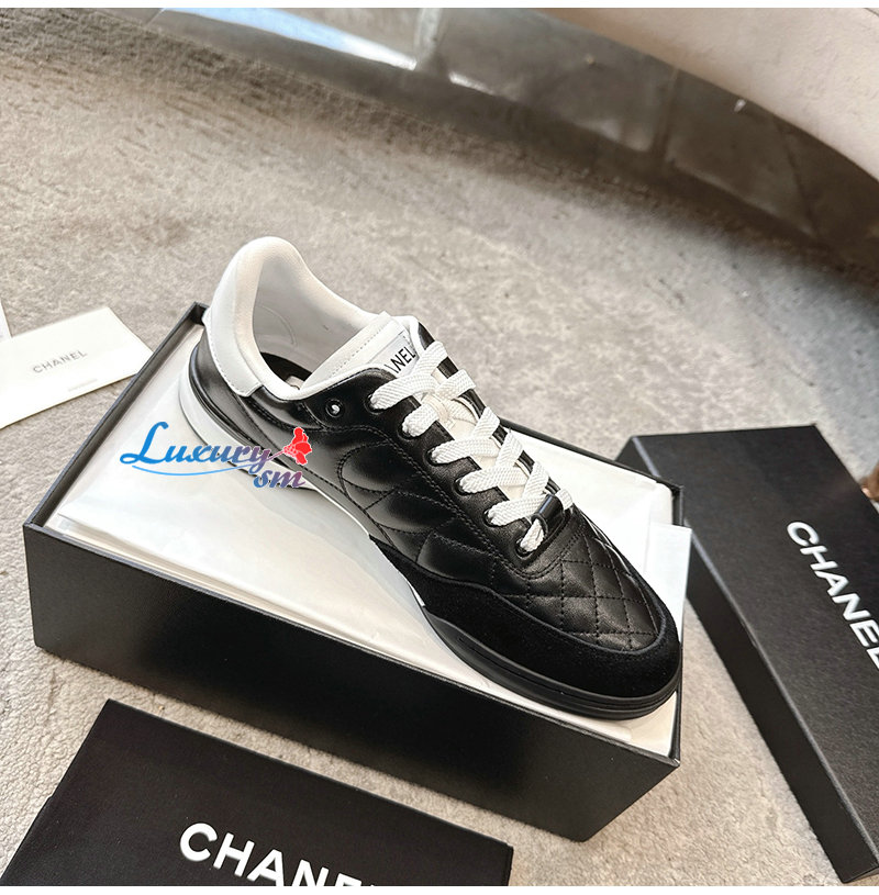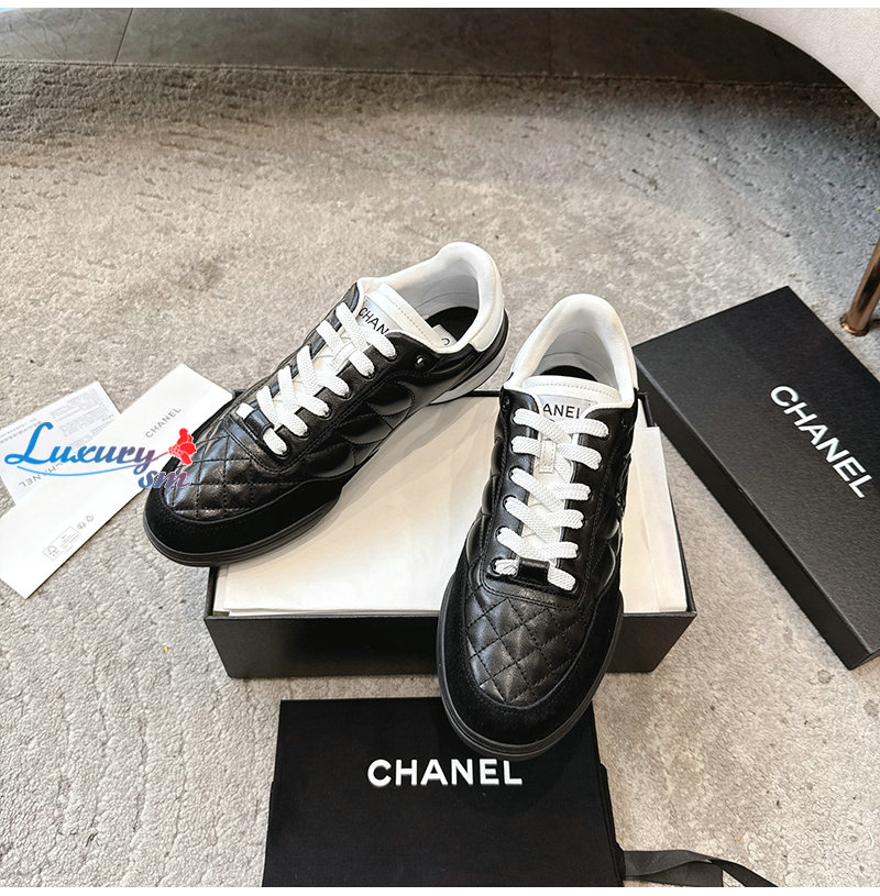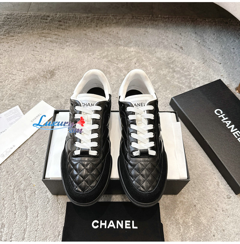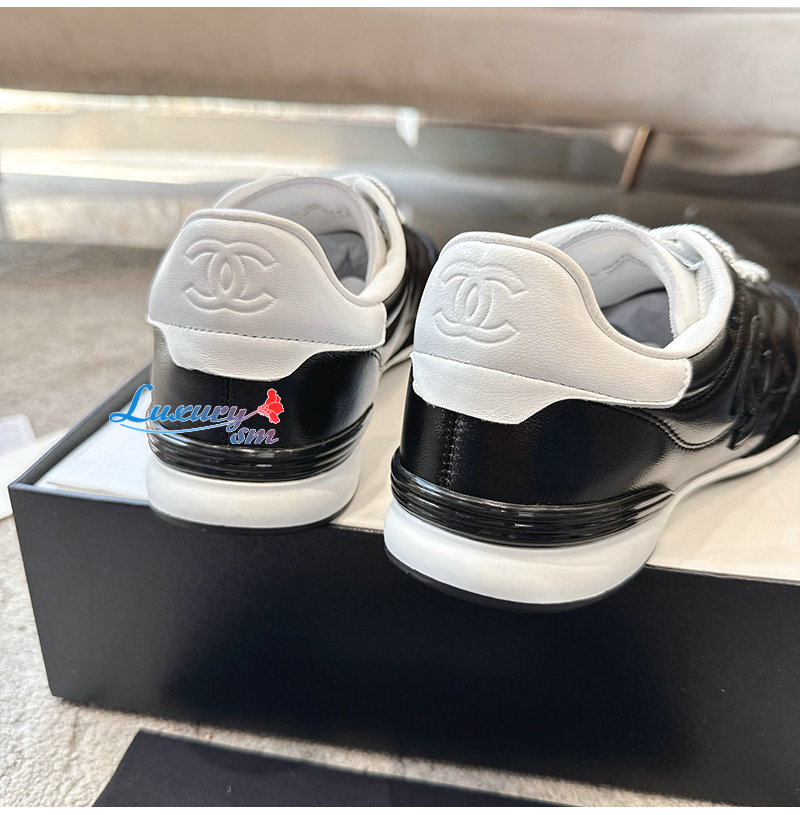 CHANEL-G45839 샤넬 블랙 유광 카프스킨 스니커즈 남여공용