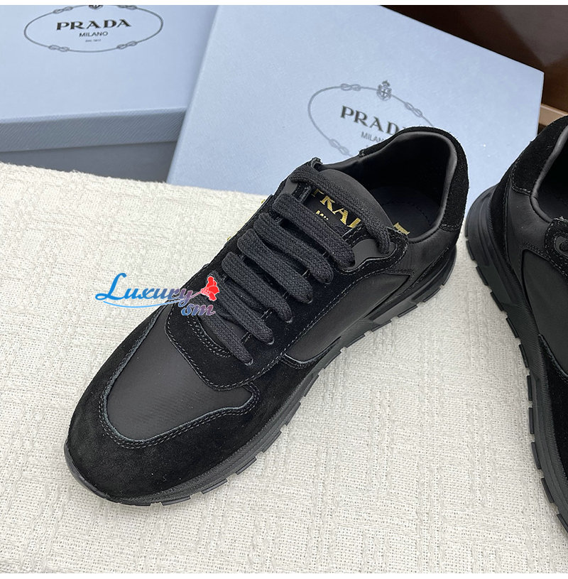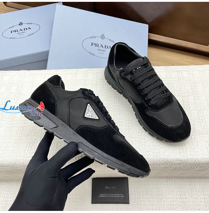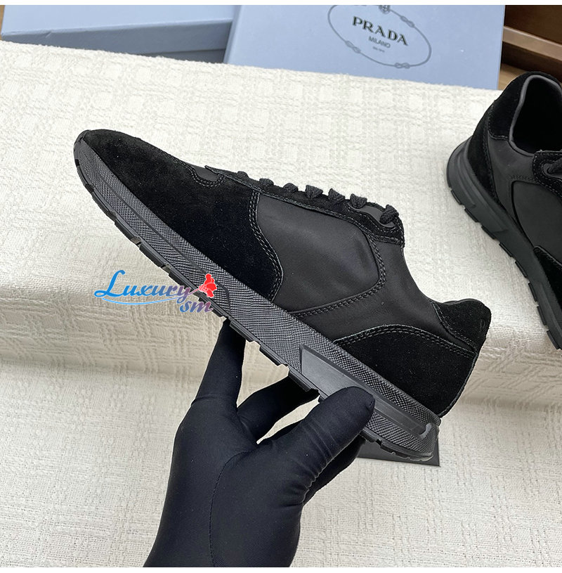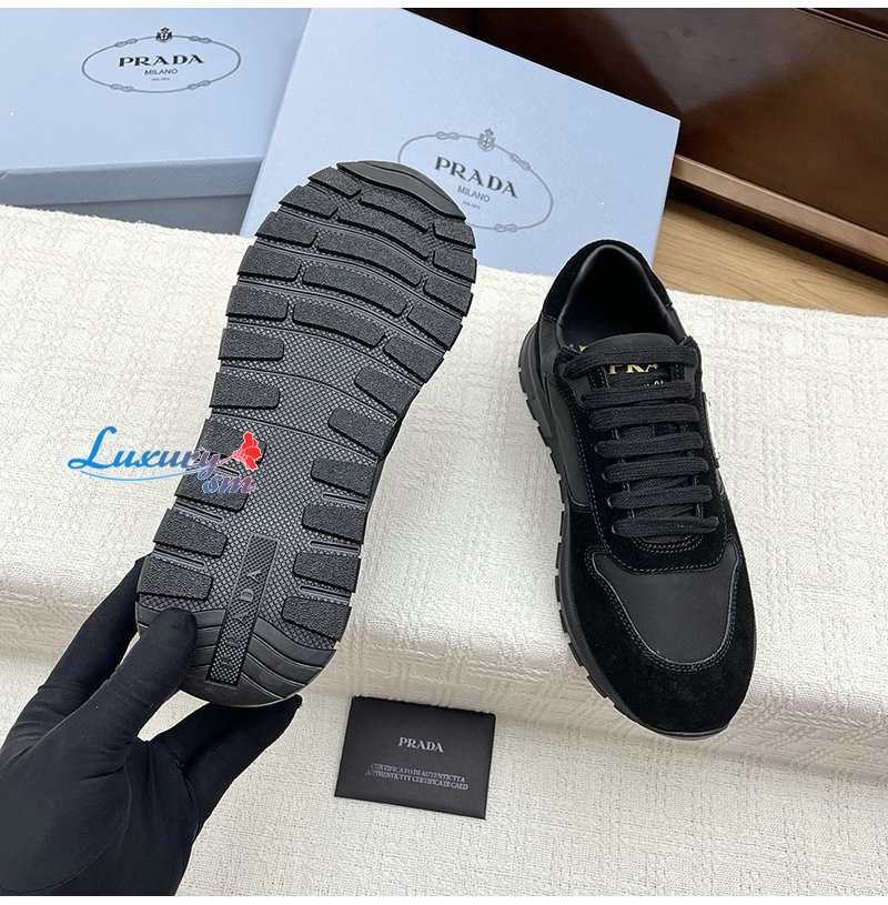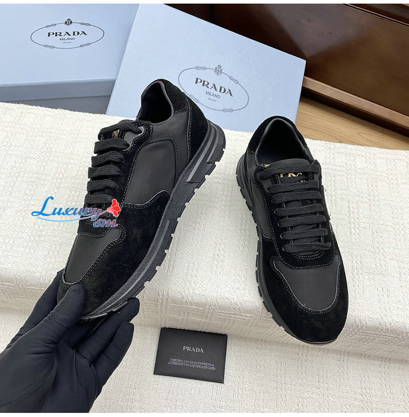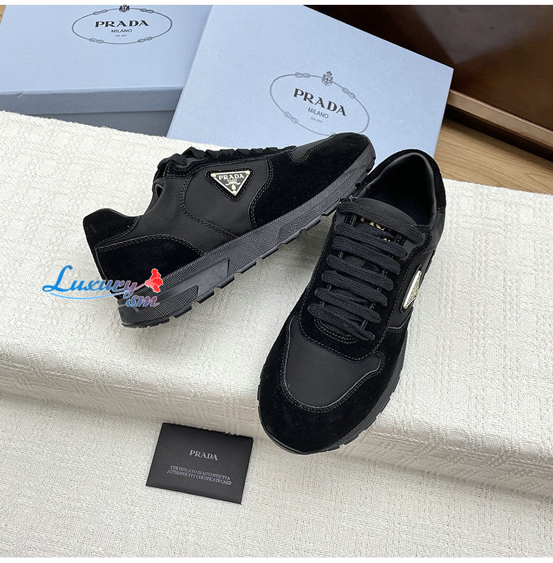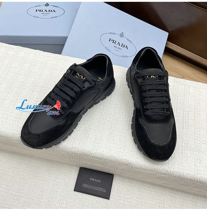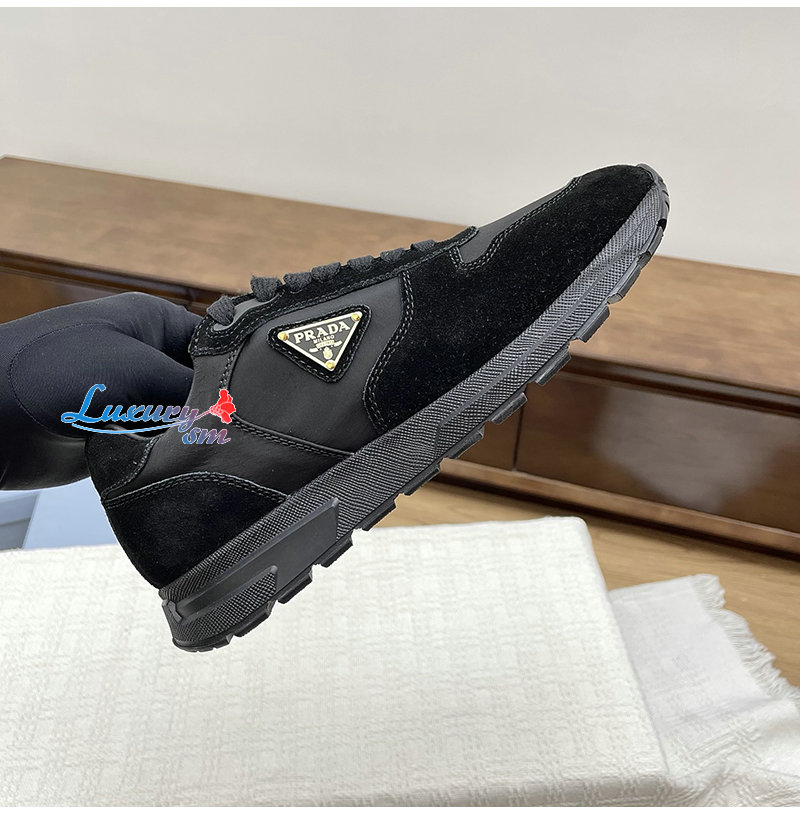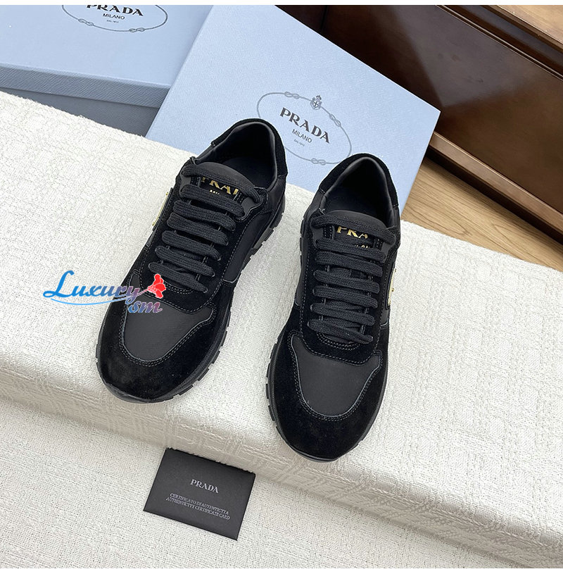 PRADA-1E921N 프라다 블랙 프랙스 2.0 리나일론 스웨이드 스니커즈 여성용
