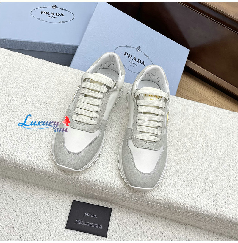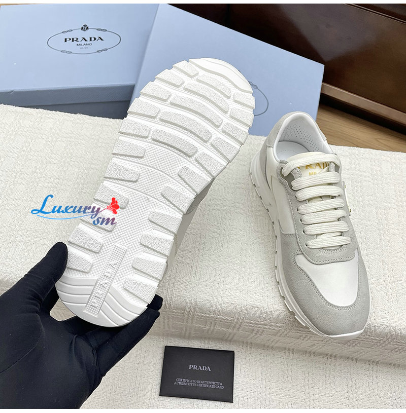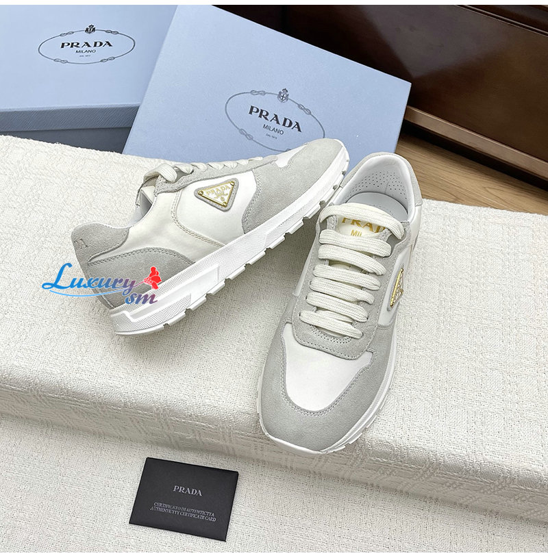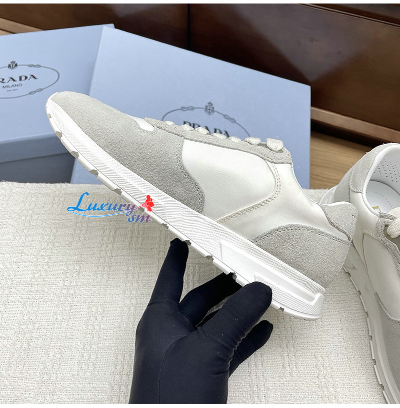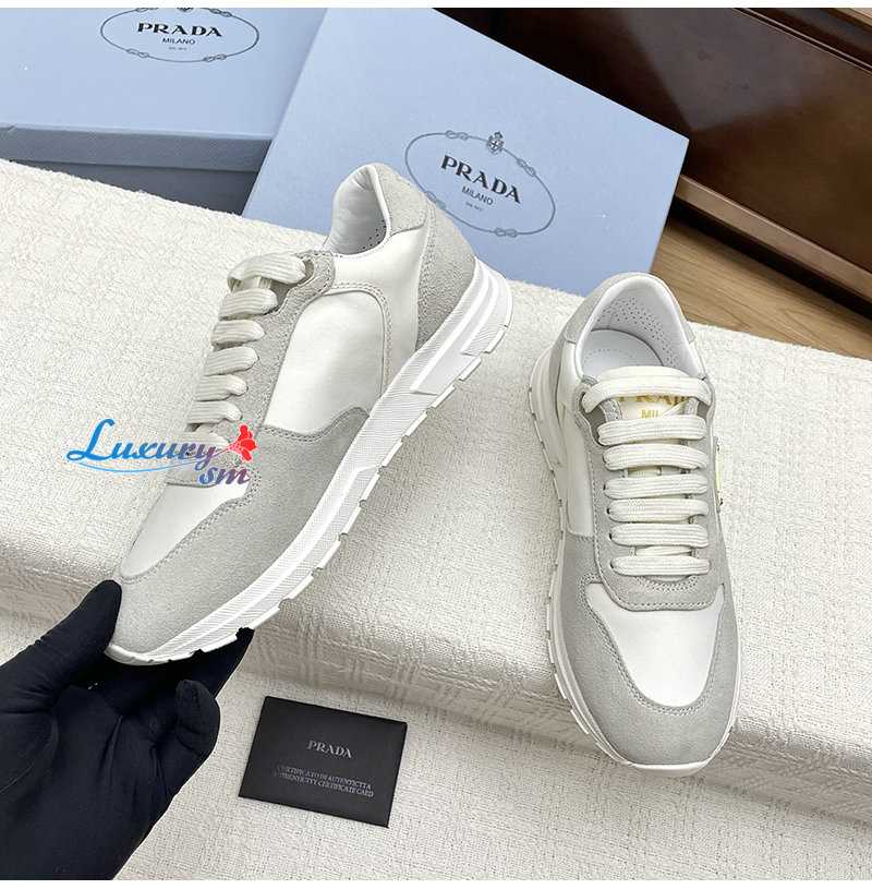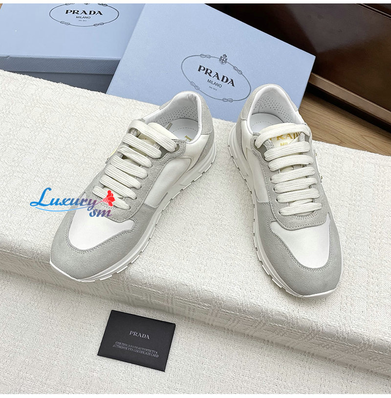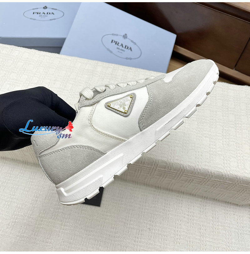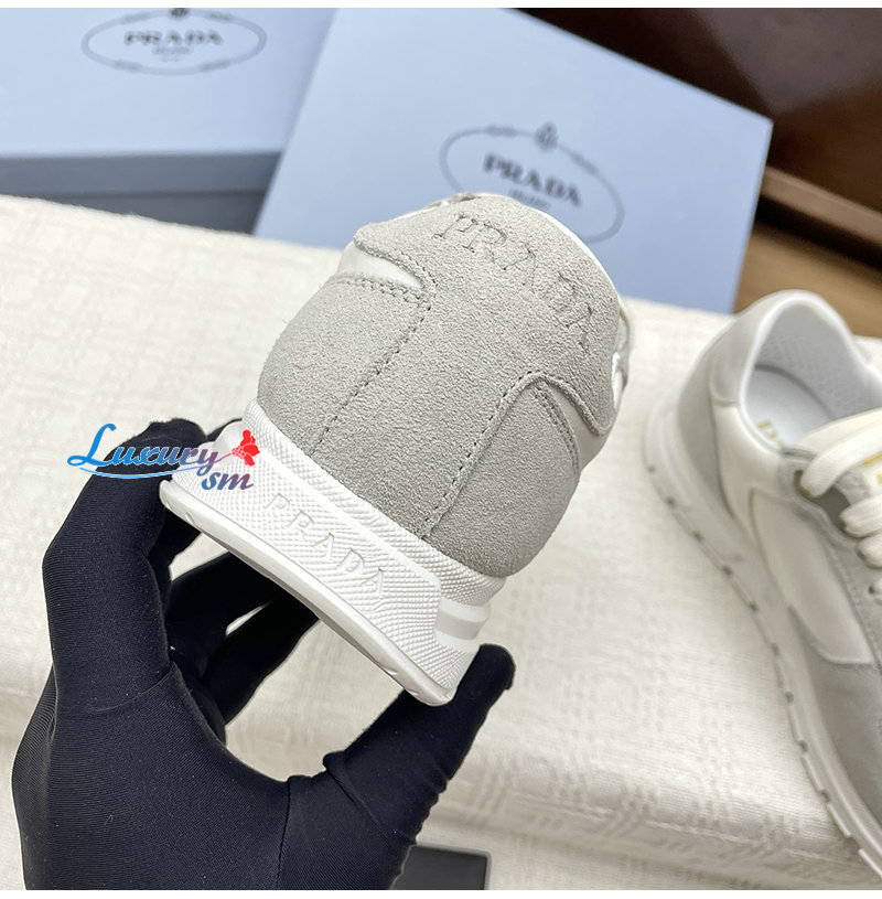 PRADA-1E921N 프라다 화이트 프랙스 2.0 리나일론 스웨이드 스니커즈 여성용