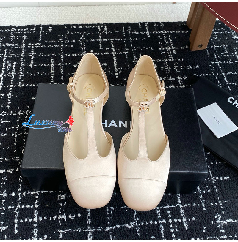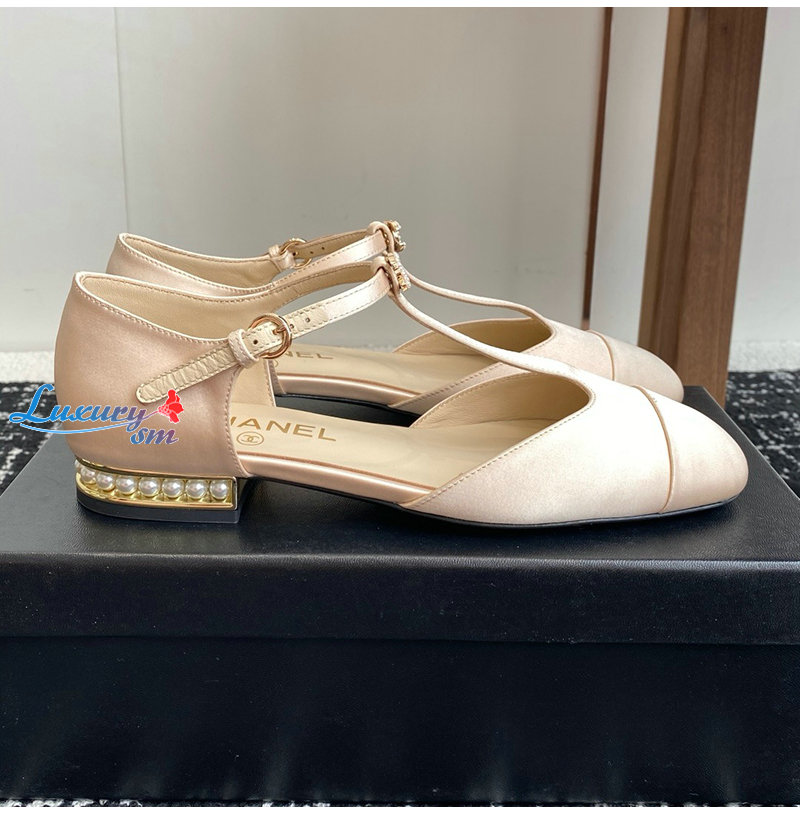 CHANEL-07152 샤넬 라이트 핑크 새틴 샌들