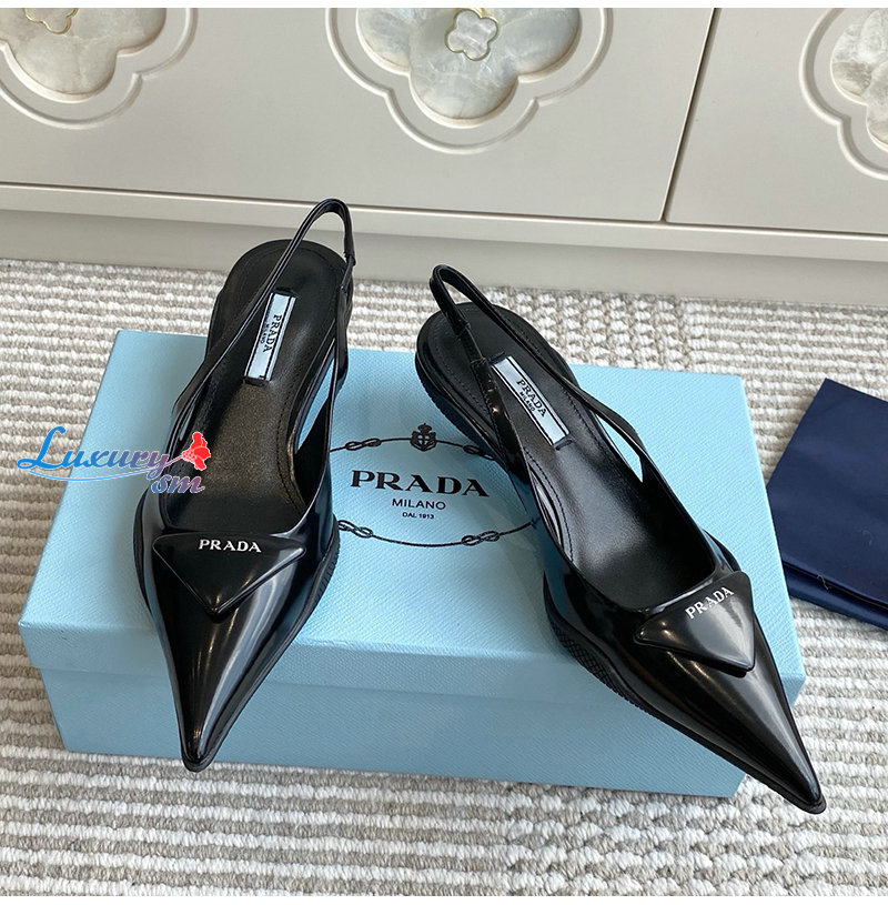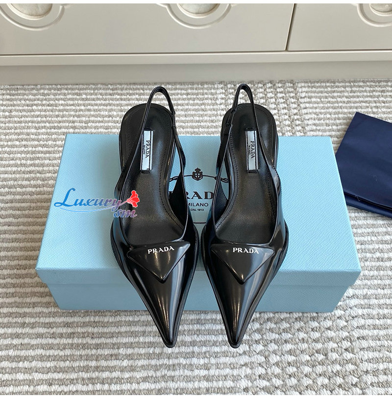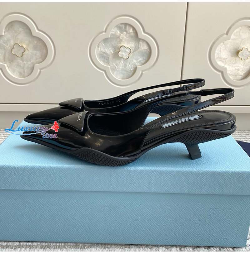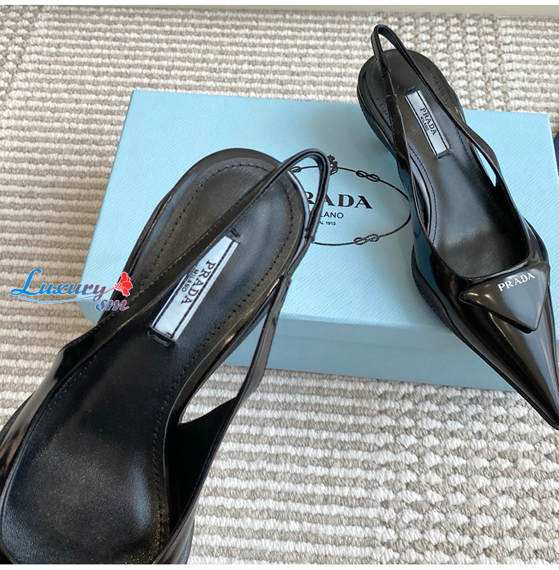PRADA-07142 프라다 블랙 가죽 슬링백 펌프스