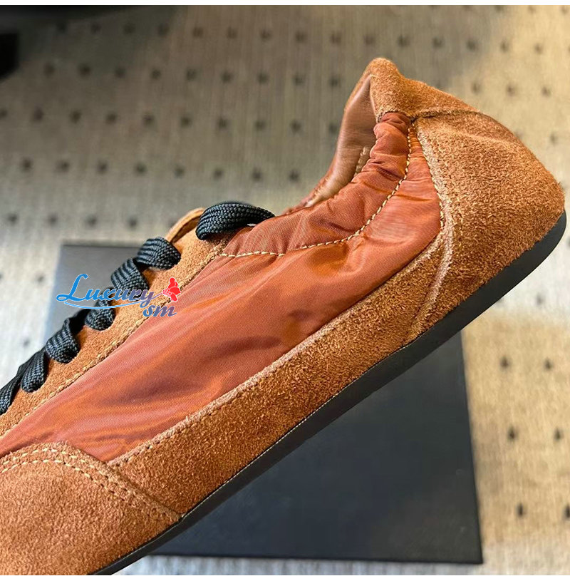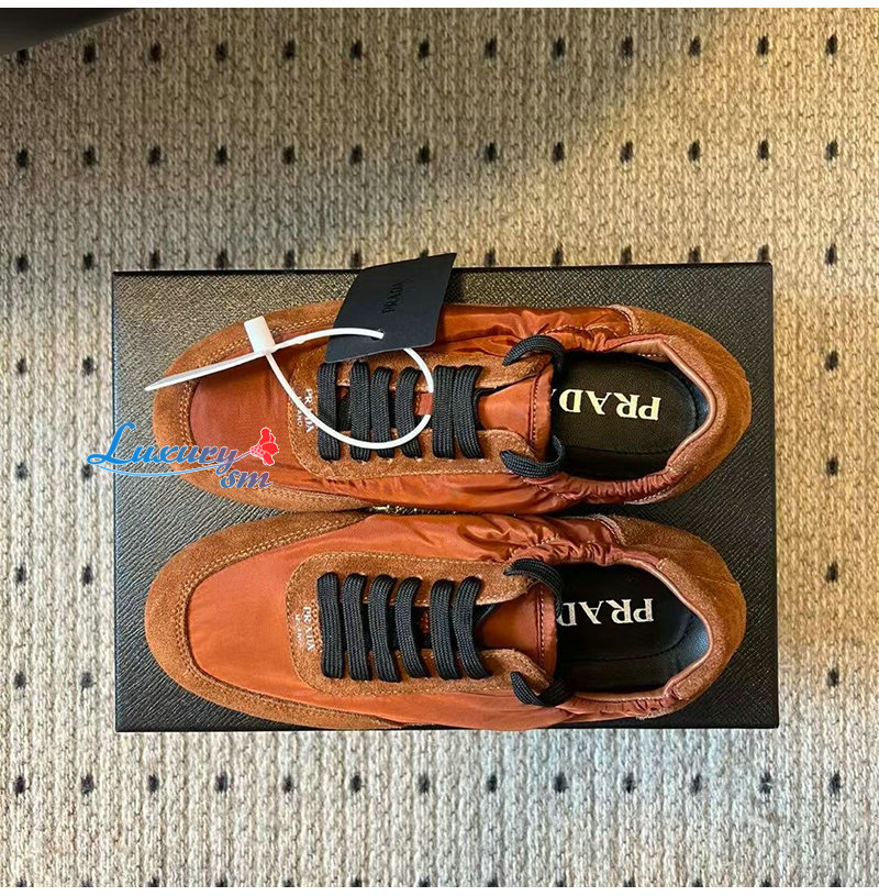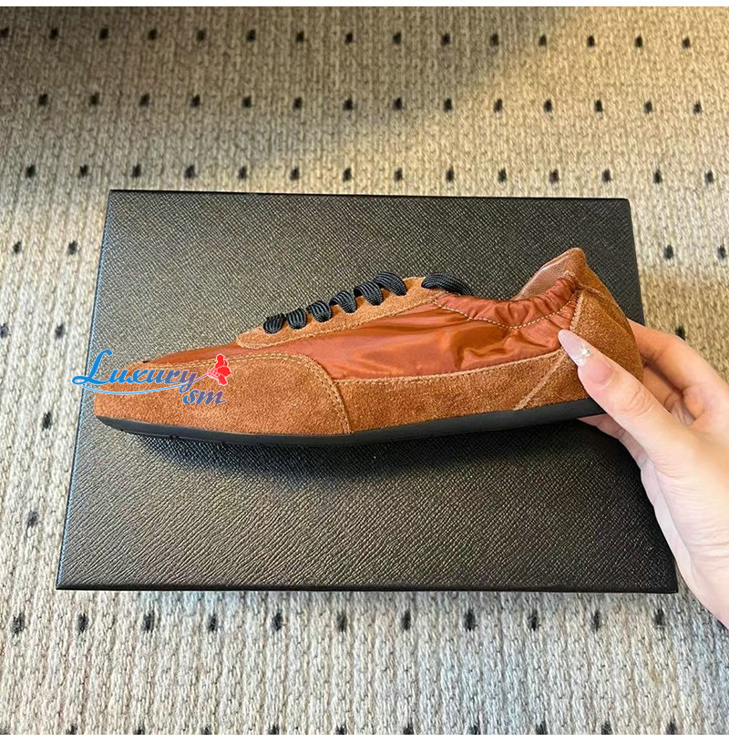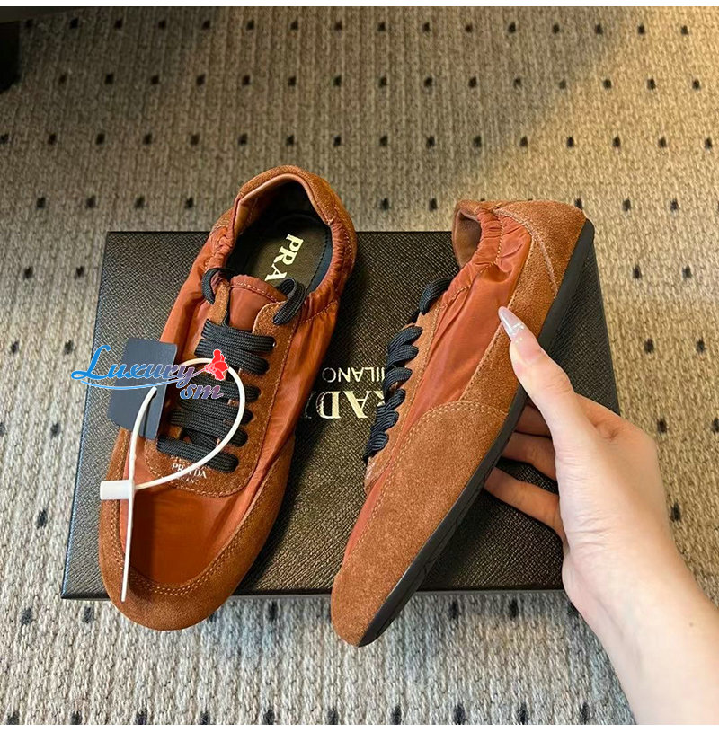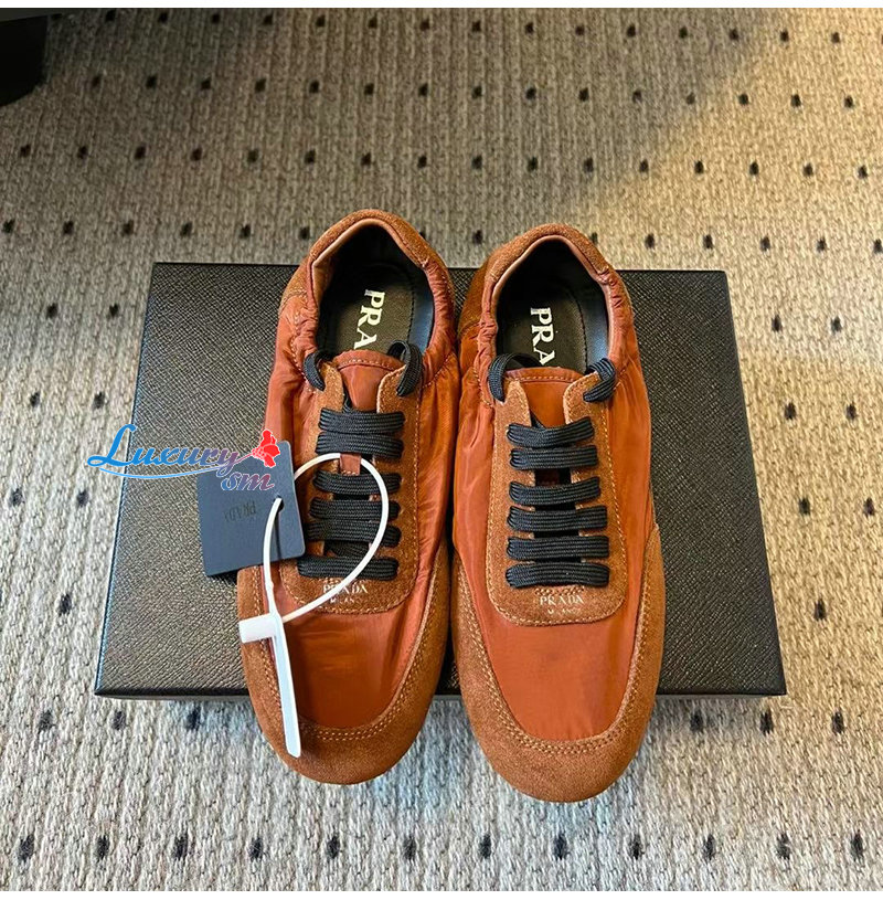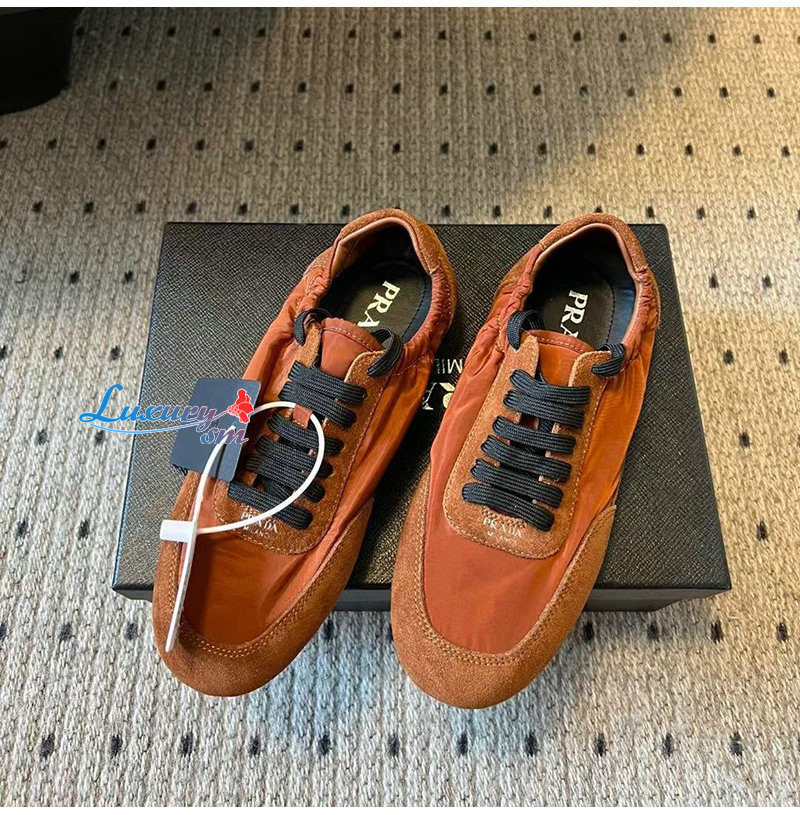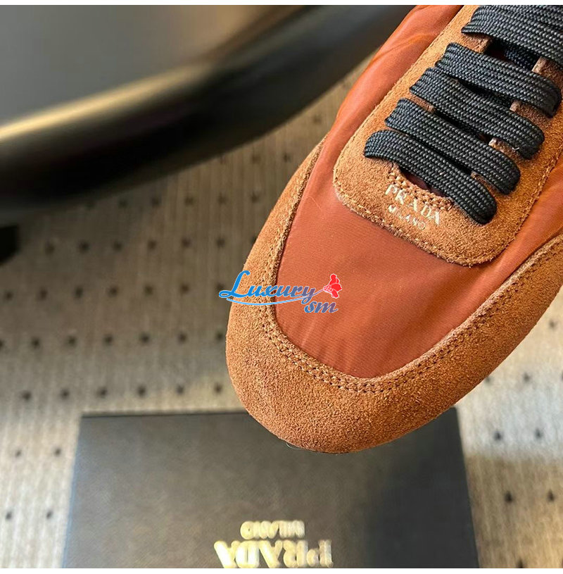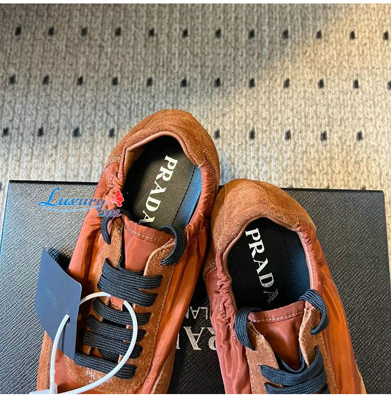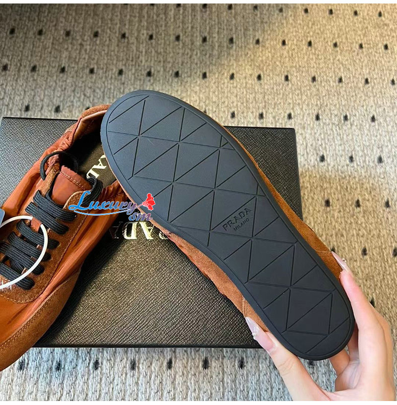 PRADA-1E959N 프라다 브라운 컬랩스 리나일론 스웨이드 스니커즈 여성용