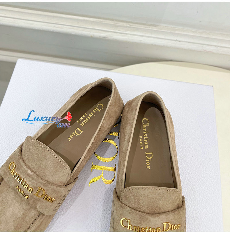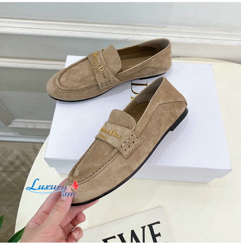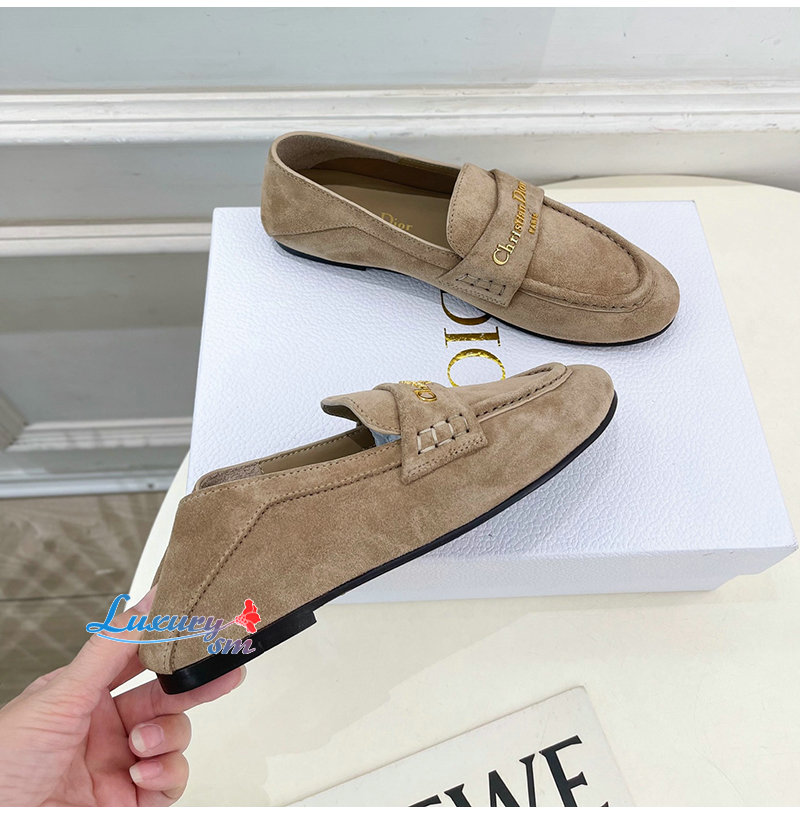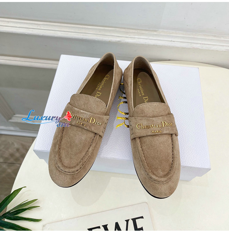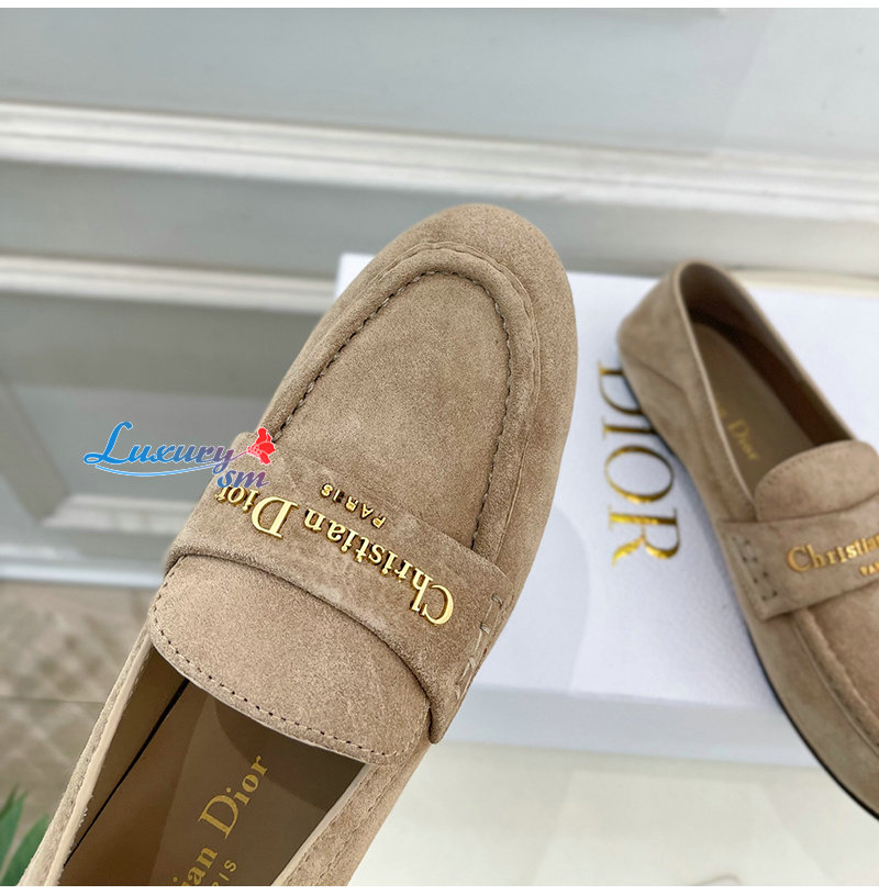 DIOR-KDF037 디올 베이지 스웨이드 송아지 가죽 Dior Boy 로퍼 여성용