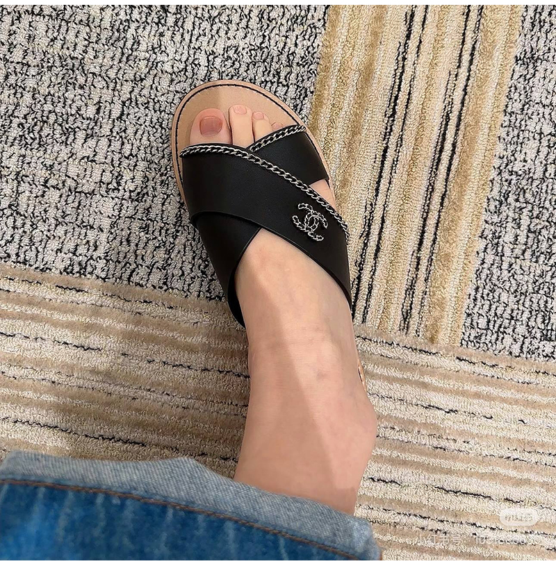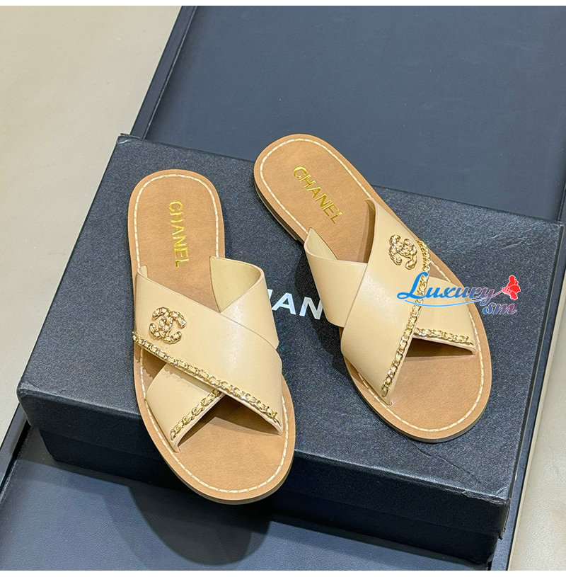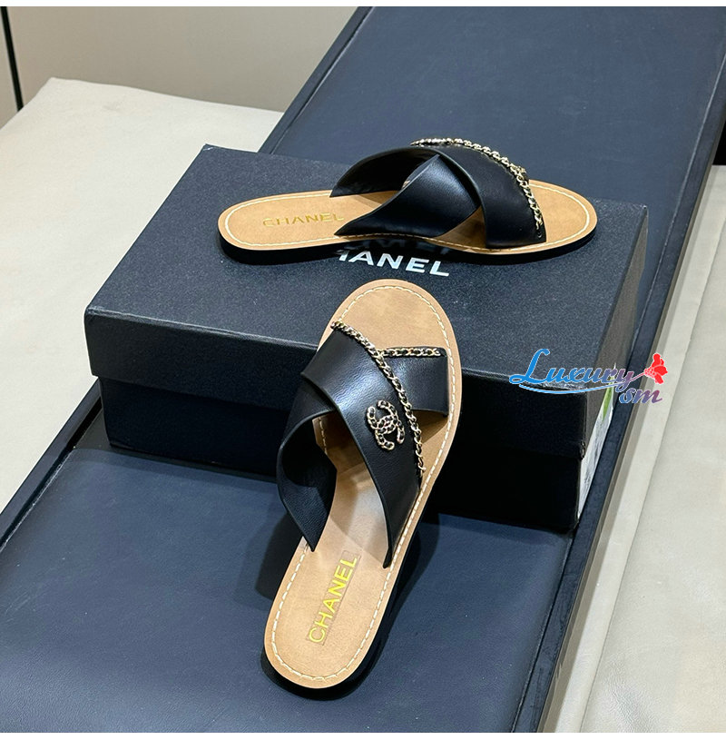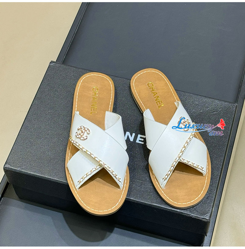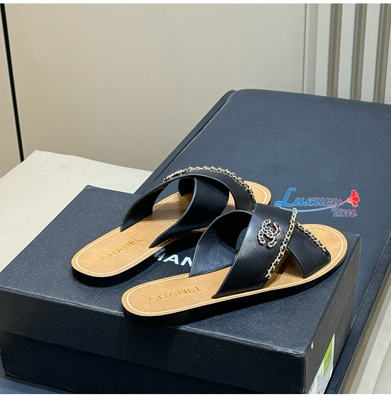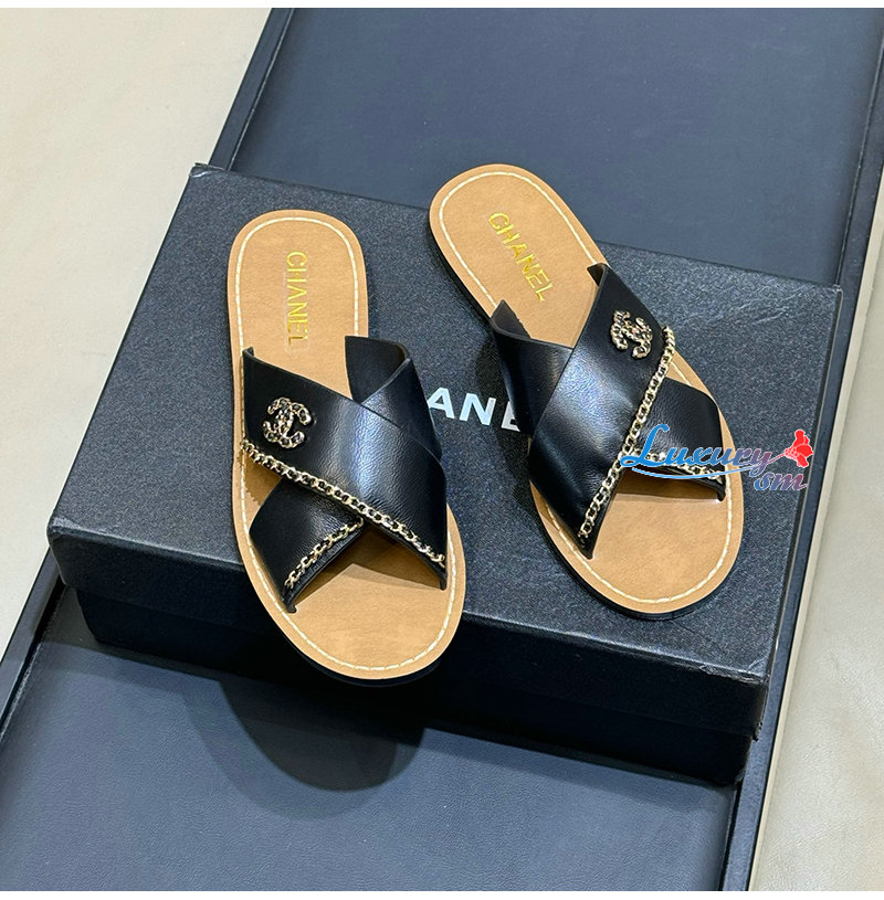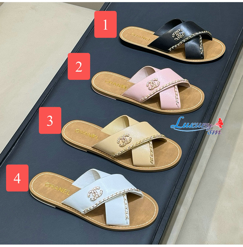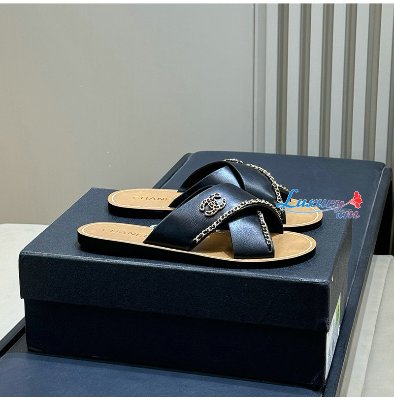 CHANEL-G40303 샤넬 CC 체인로고 가죽 슬리퍼 여성용 (4컬러)