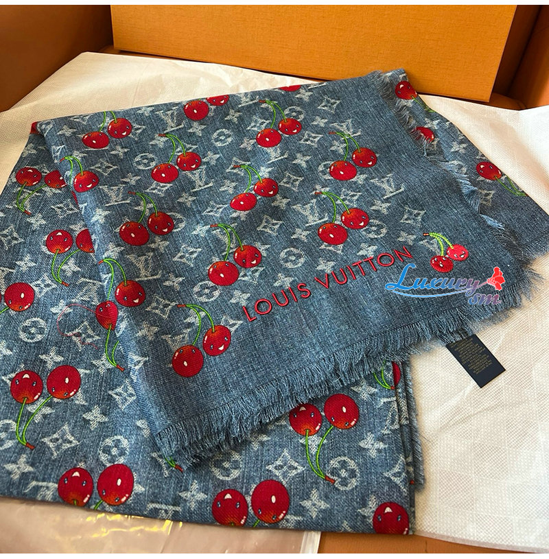 LOUIS VUITTON-M96379 루이비통 무라카미 타카시 체리 데님 숄 LV x TM Denim Cerise Shawl