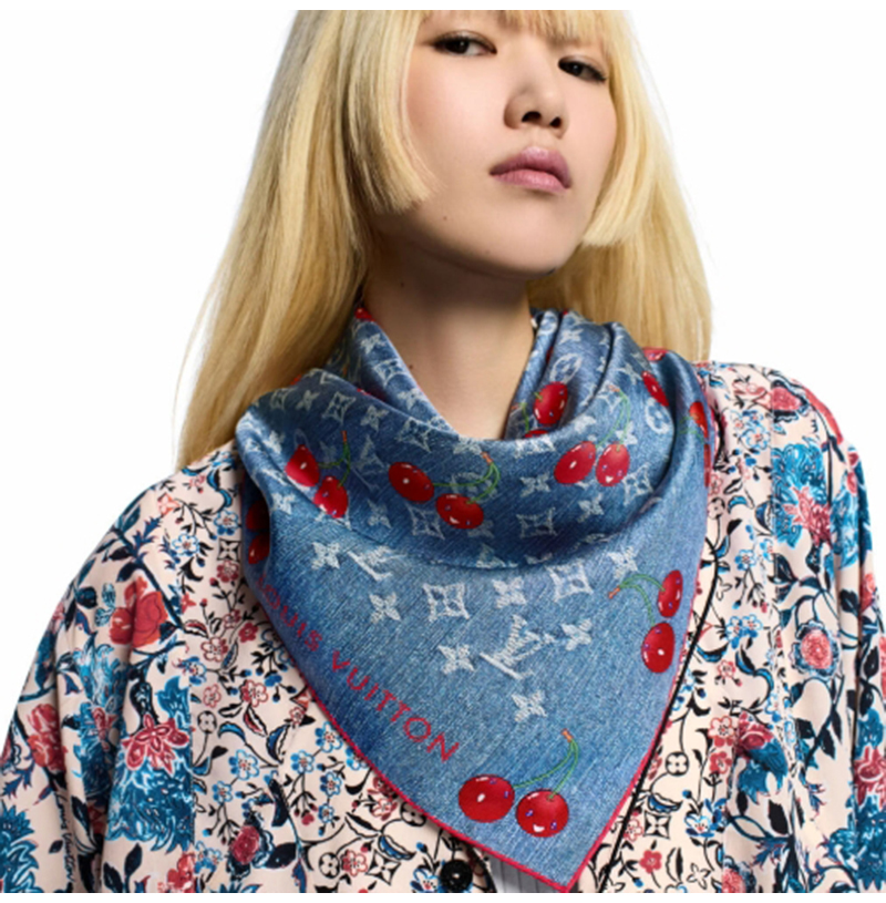 타카시 무라카미 데님 체리 스카프는 루이비통 x 무라카미