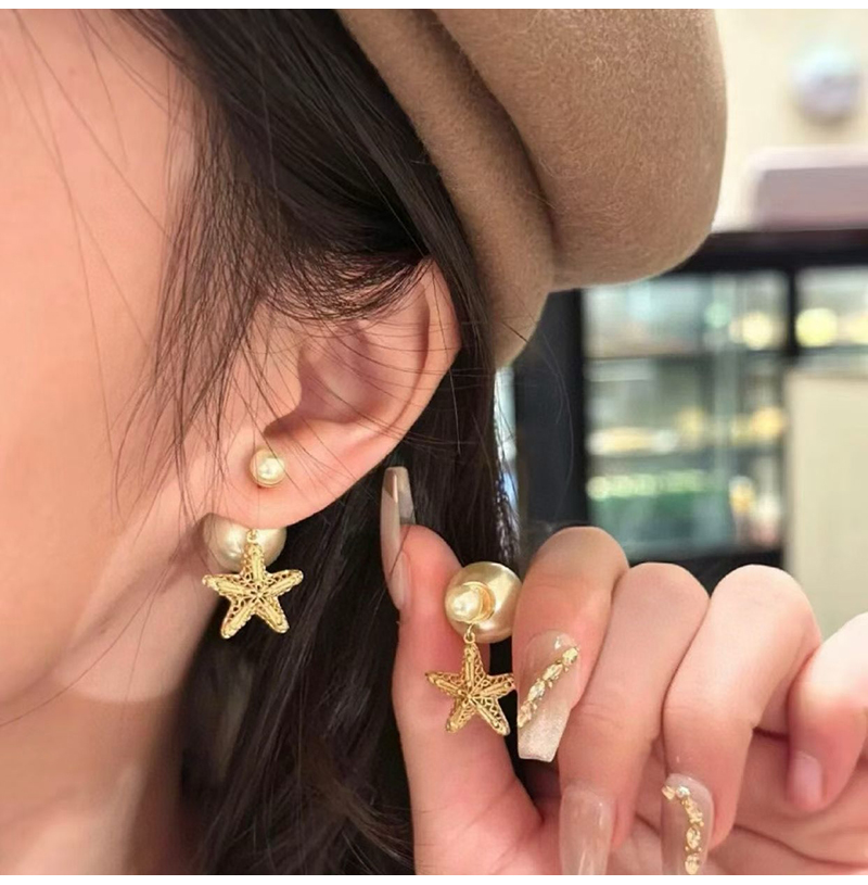 DIOR-6050 디올 불가사리 펜던트 CD 진주 귀걸이