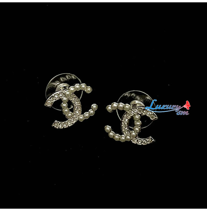 CHANEL-7411 샤넬 스타일 더블 C 하프 펄 앤 하프 큐빅 귀걸이