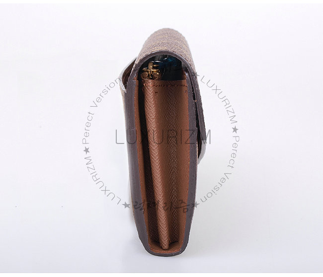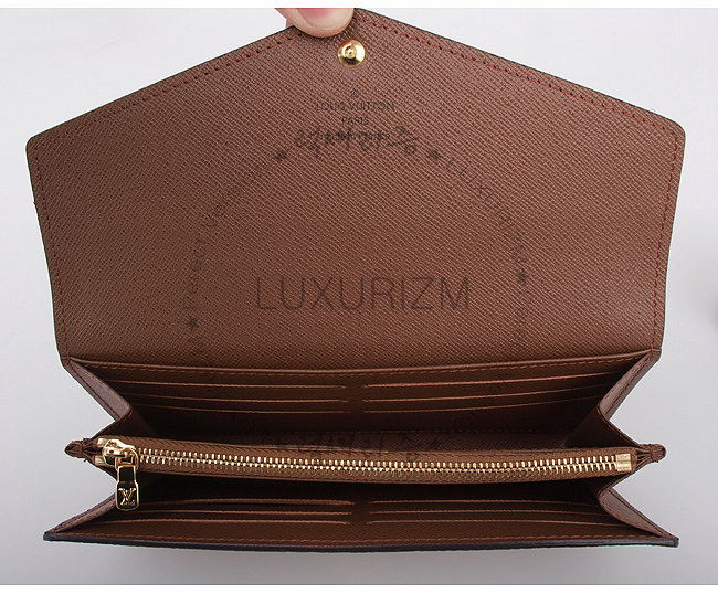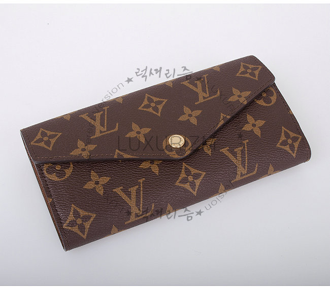 엔벨로프 스타일의 사라 월릿은 모노그램 캔버스 소재의 우아한 외관과 실용적인 내부 구조가 특징으로 다수의 포켓과 신용카드 수납칸이 포함되어 있습니다.