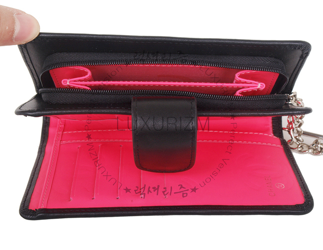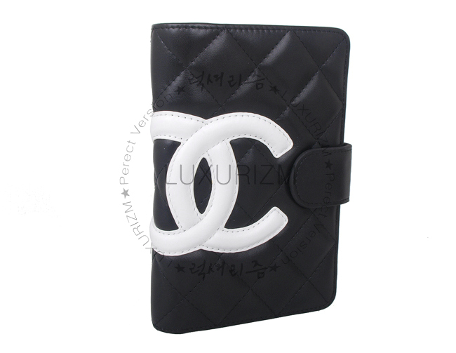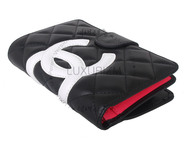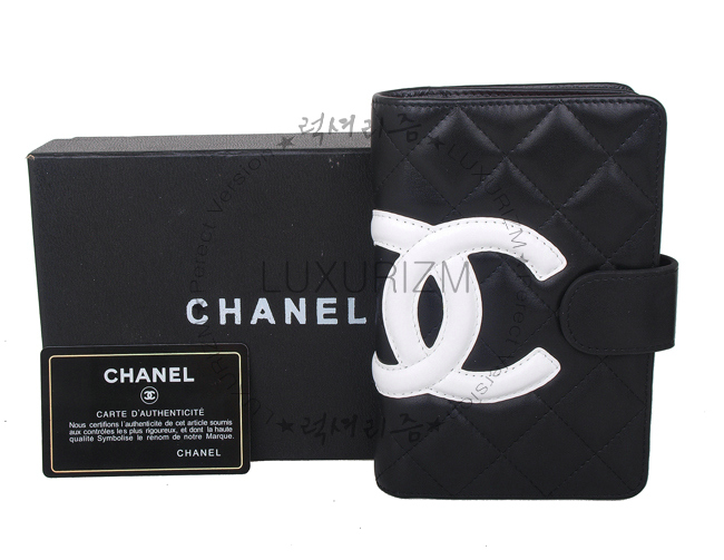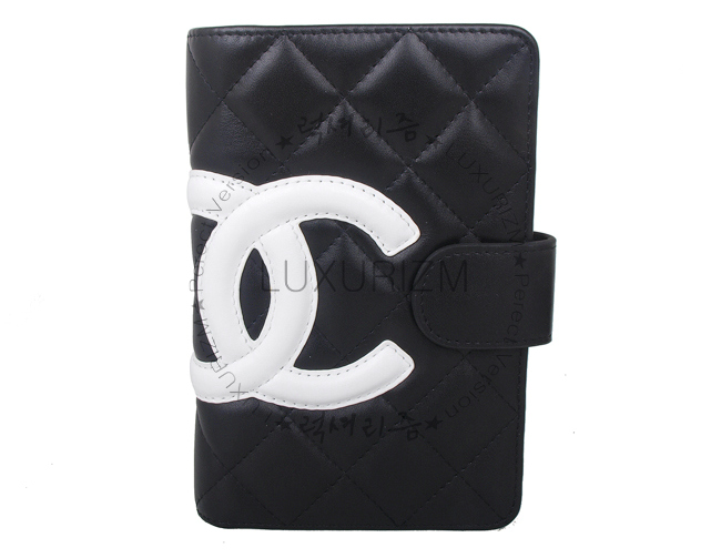 CHANEL-32805 깜봉 장지갑 블랙&화이트로고