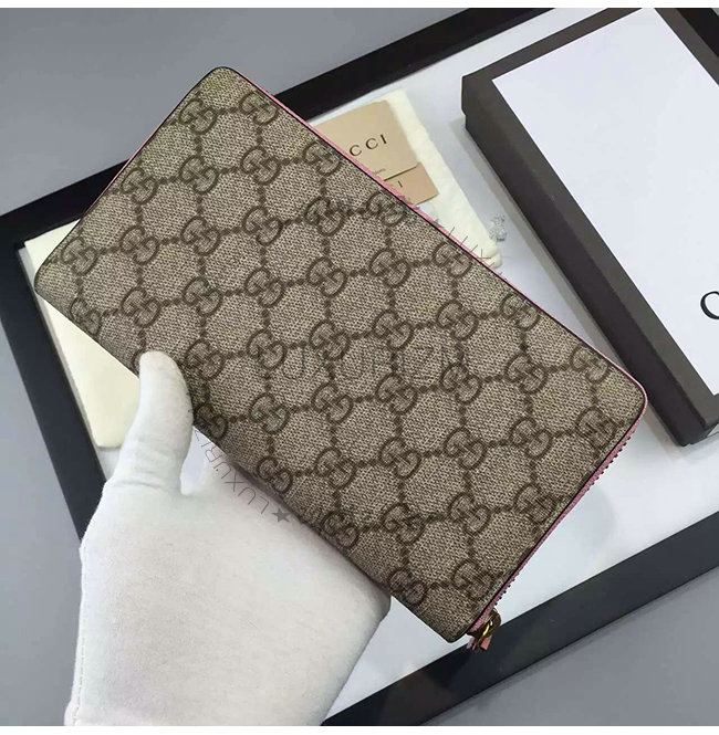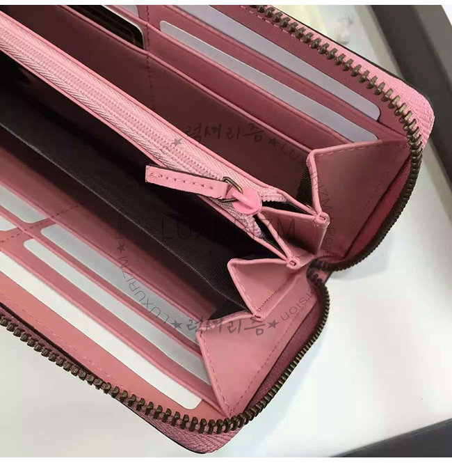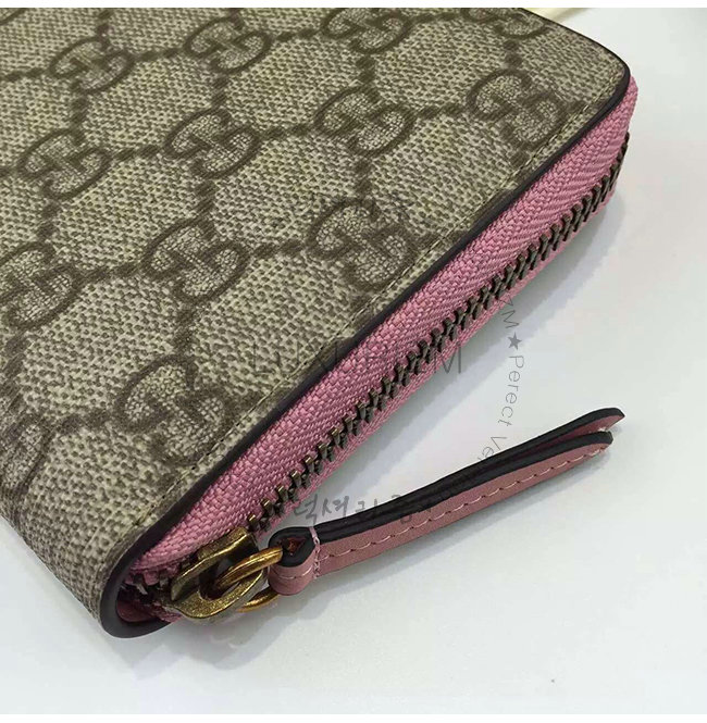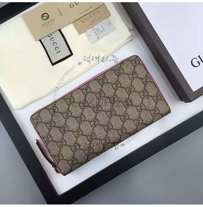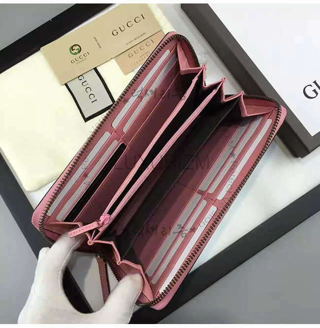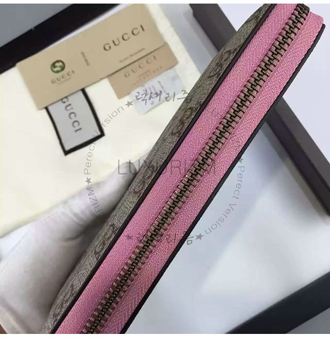 GUCCI-410102 5812 구찌 Linea A 시그니처 가죽 지퍼 장지갑 핑크