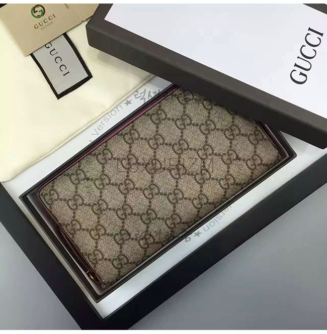 GUCCI-410102 8526 구찌 Linea A 풀 디테일 GG 수프림 캔버스 지퍼 장지갑 브라운