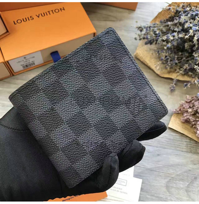 루이 비통의 상징적인 다미에 그라파이트 캔버스로 선보이는 우아한 아메리고 월릿은 클래식한
