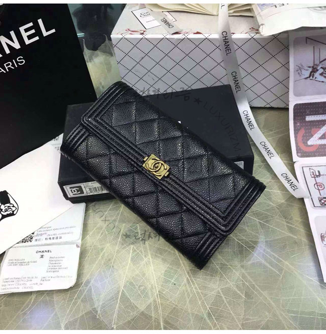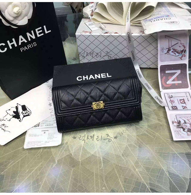 #샤넬 신상 여성지갑 레플리카 쇼핑몰CHANEL-A80286 샤넬 보이 고트스킨 골드 메탈 플랩 지갑 블랙.