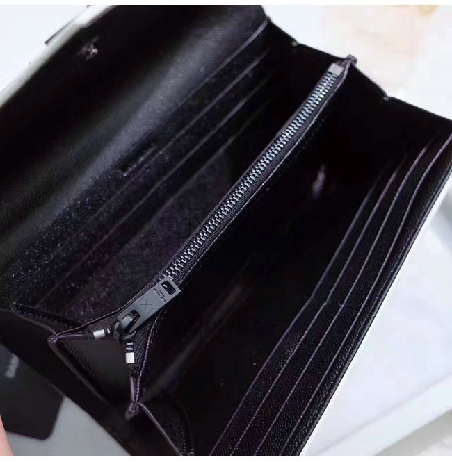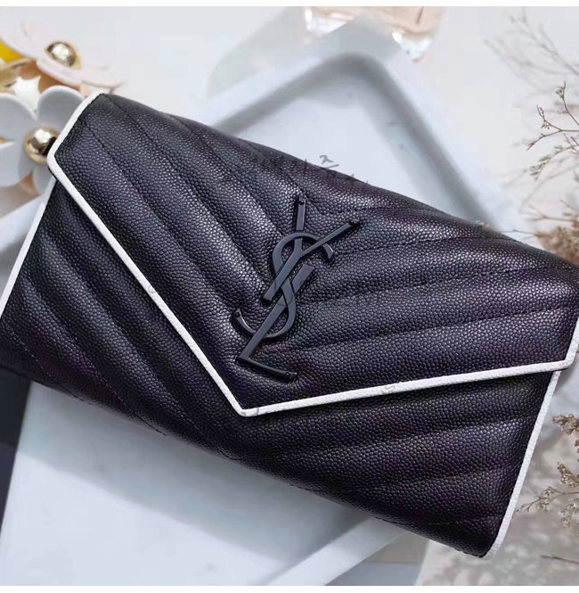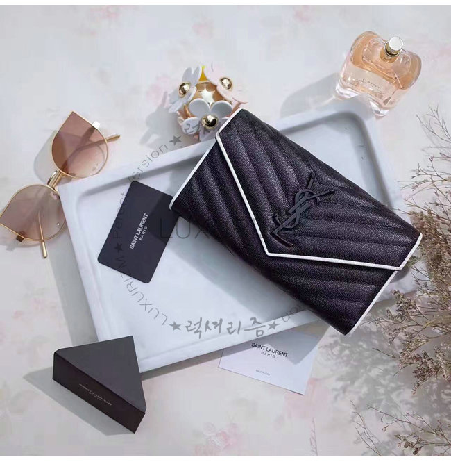 [스페셜오더]SAINT LAURENT-372264 생 로랑 도브 블랙 화이트 그랑 드 뿌드르 텍스처드 마틀라세 가죽 라지 모노그램 생 로랑 플랩 지갑